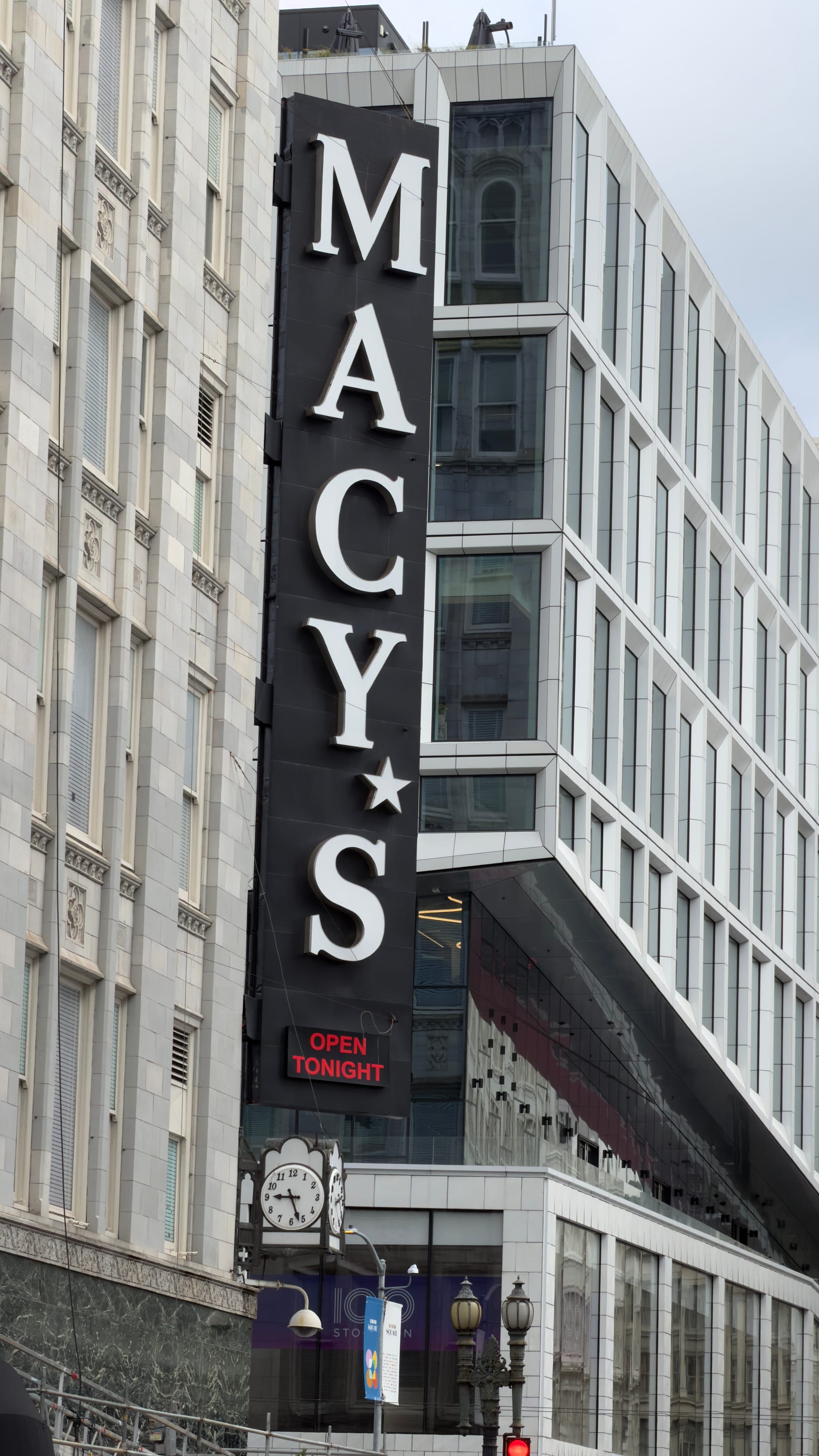 On we boarded the replacement service. They are lovely looking creations but as noisy as hell. It is traditional to hang off the side like a maniac but I rose above it it all and stayed in the dry. We alighted at Union Square where it was still raining. And Mrs Verno eyes immediately settled on the big shop across the street. Into Macy’s we went.