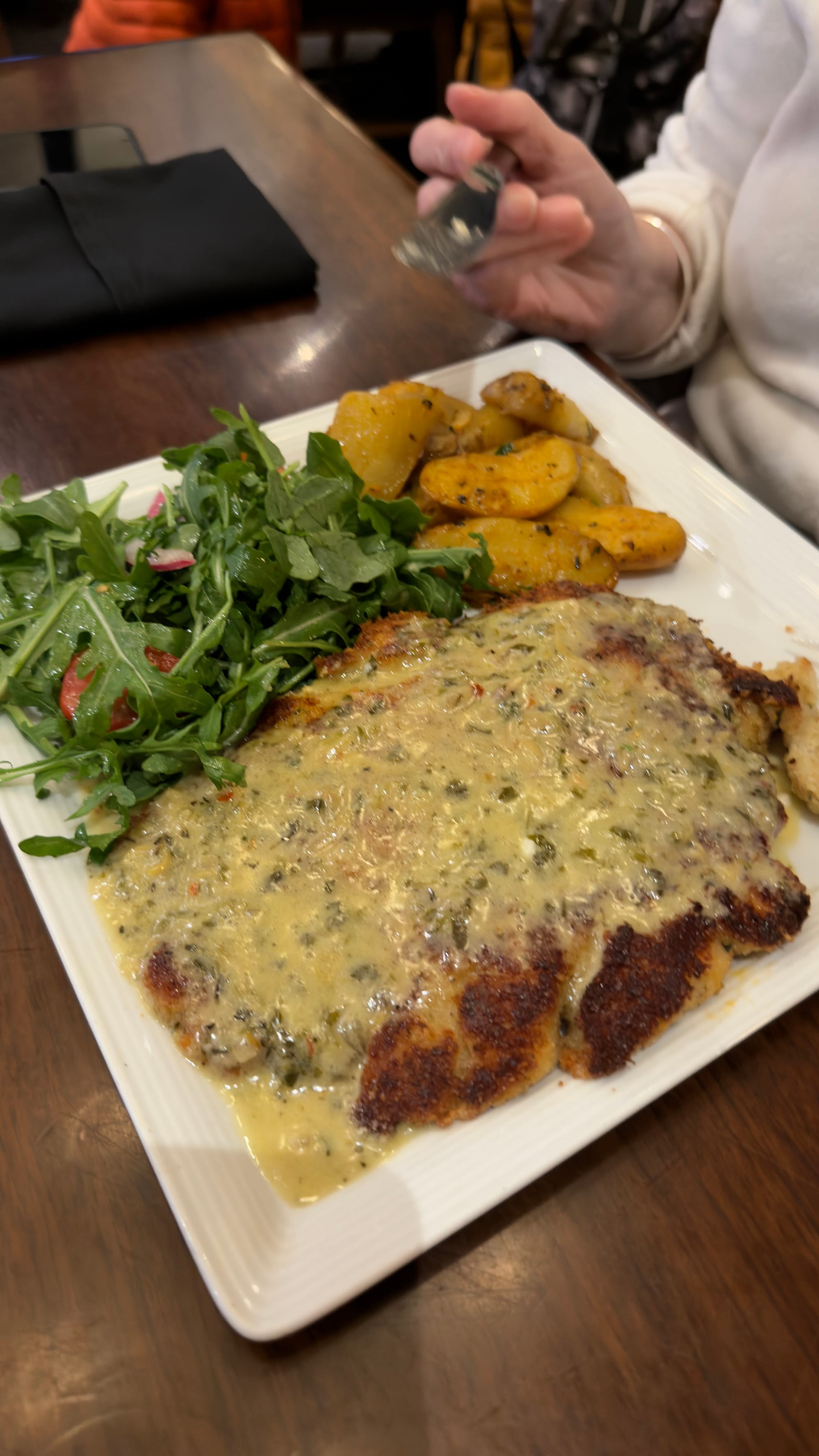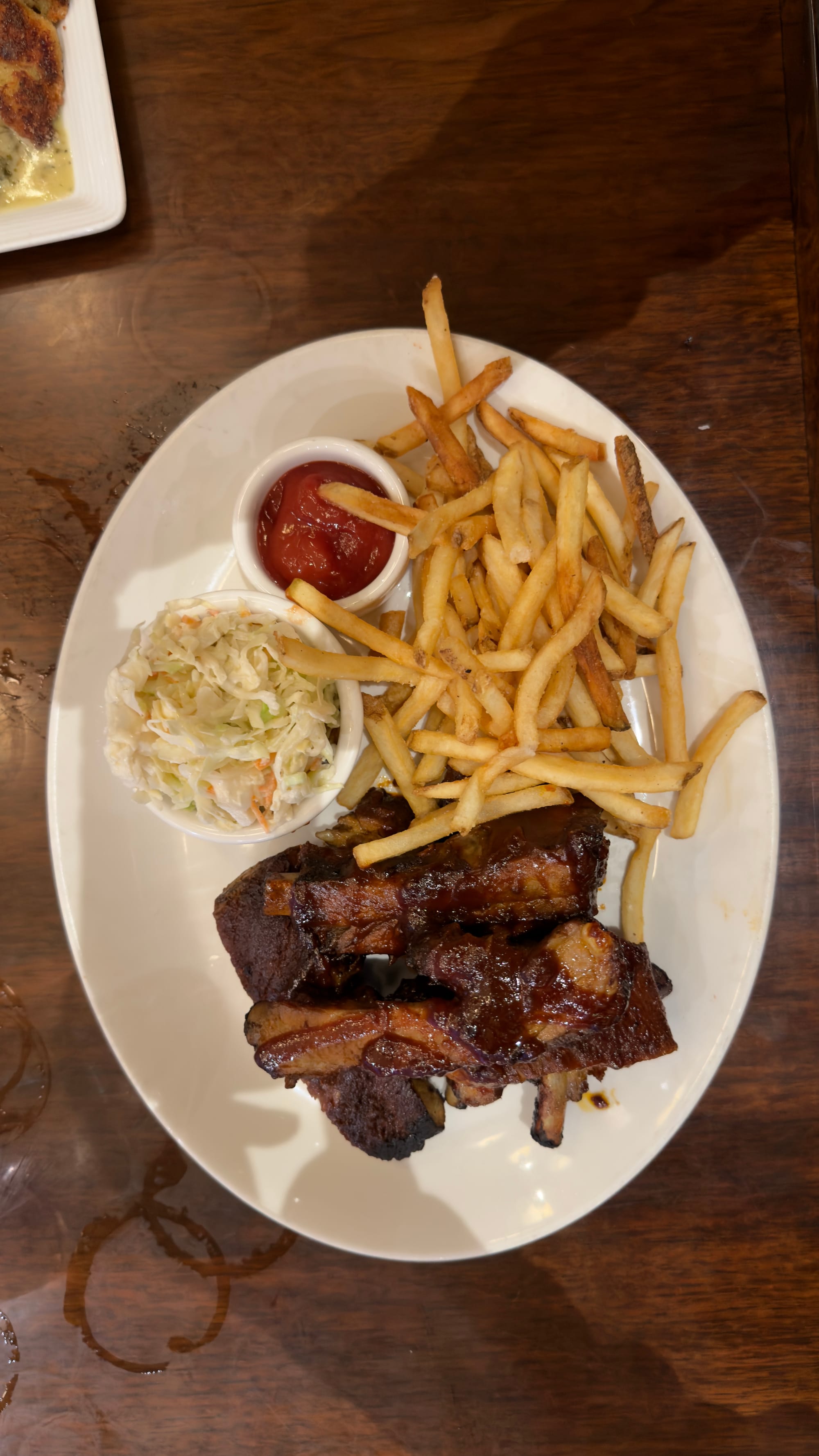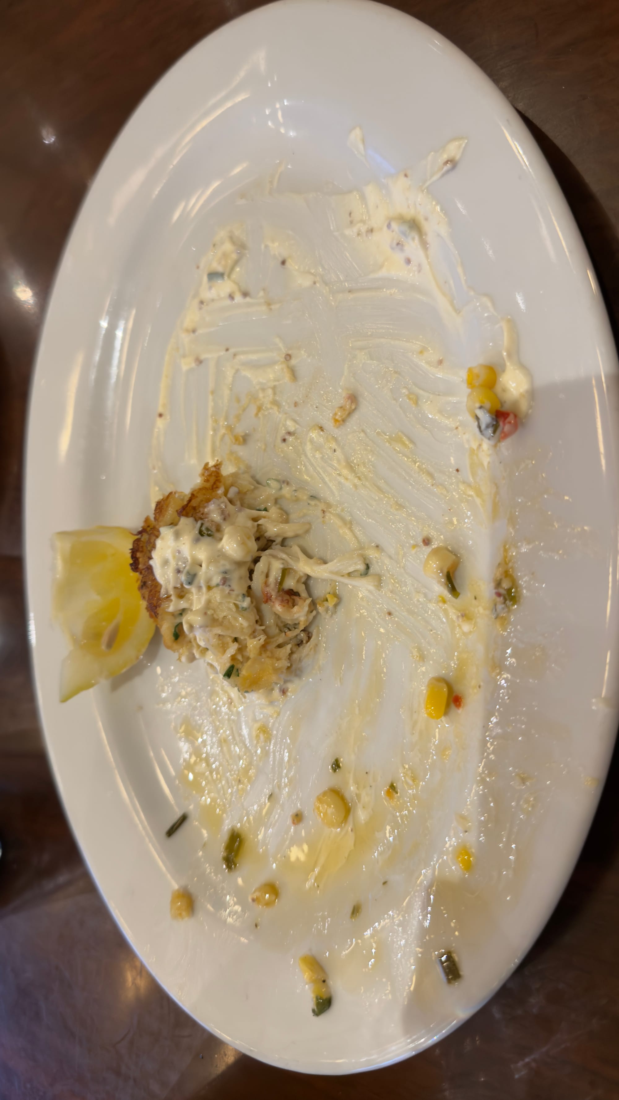 Remnants of a crab cake, ribs and Chicken Milanese.
