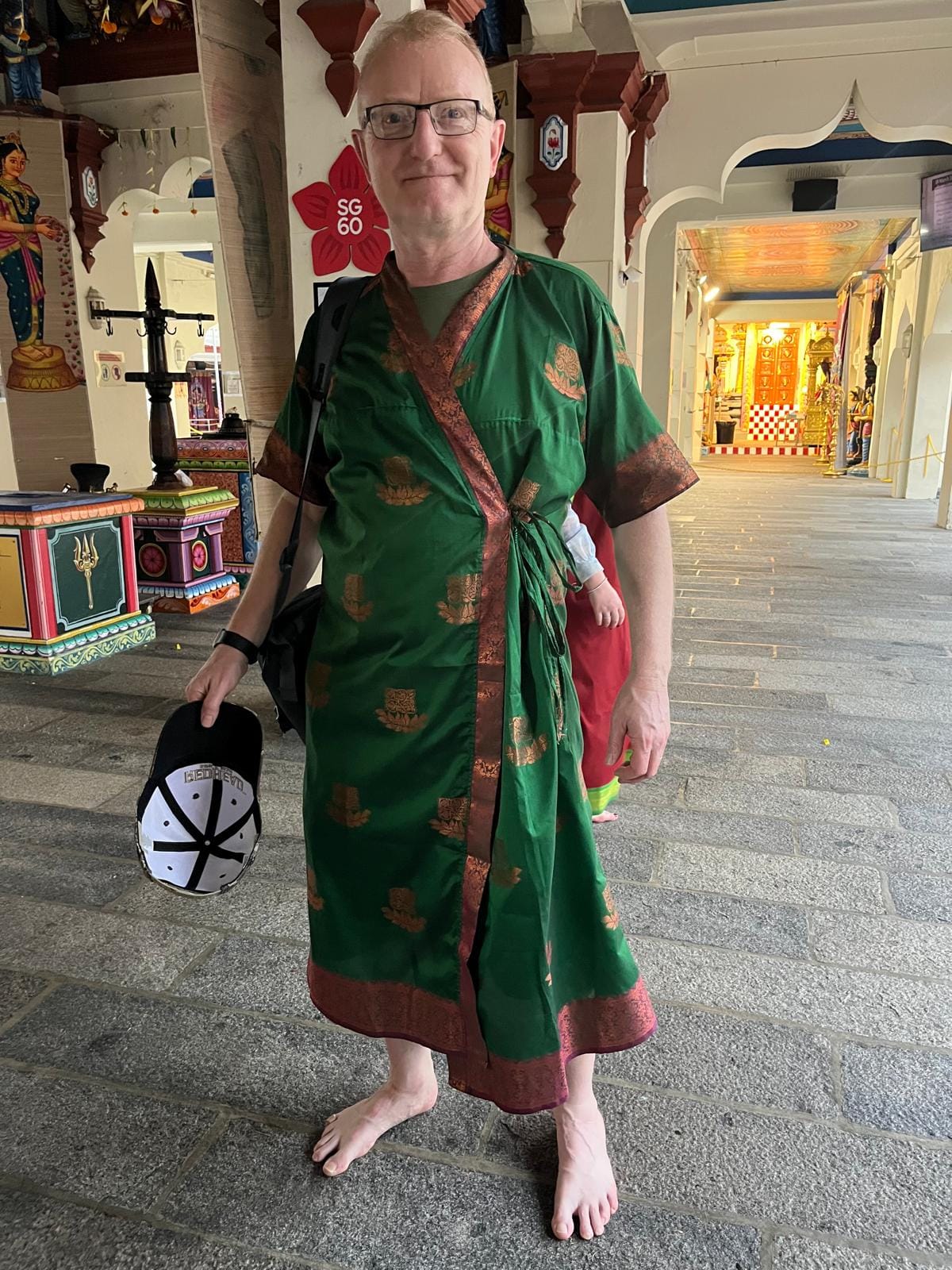 The day continued after the tour once we had wee rest. A venture into Chinatown was a last minute decision but proved worth it as we bidded our time until our next activity. We visited two more temples and it must be said they were well worth visiting. The Buddhist Tooth Temple had dress regulations which unfortunately resulted in the following. The more observant of you will be impressed that I am currently growing an extra arm. Overall nota fashion highlight but a medical marvel nonetheless.
