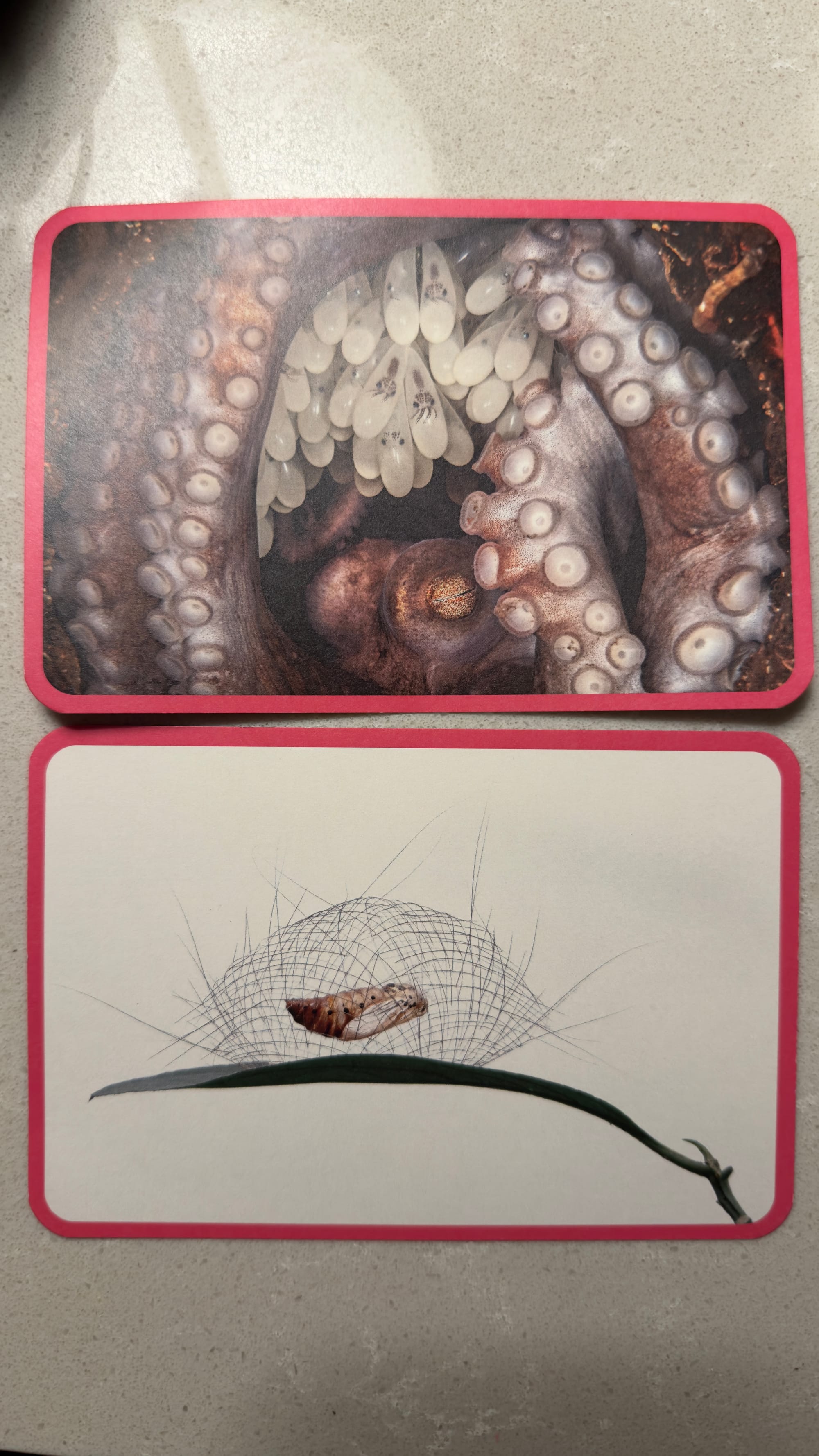 The first thing was did ended up committing us to answering a questionnaire in 8 weeks time. I kid you not. There was a display of nature photographs and you had to pick the one that spoke to you. That was it. You answered some online questions and agreed to answer more in 8 weeks time. It seems the photo you picked said something wonderful about you. Mrs Verno likes to build things. I am empathetic and protective. Pretty accurate eh? You can see the images we picked below. Mine is an octopus protecting its young and Mrs Verno’s is a grub the pulls its own hairs out to build a cocoon. You could not make this up.
