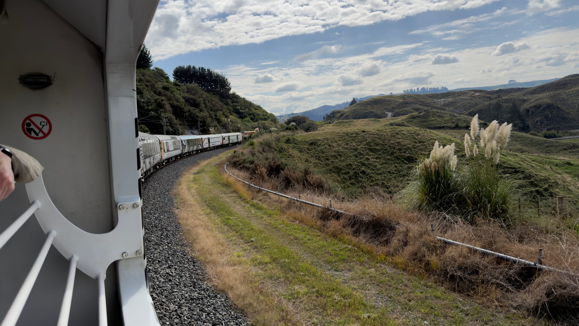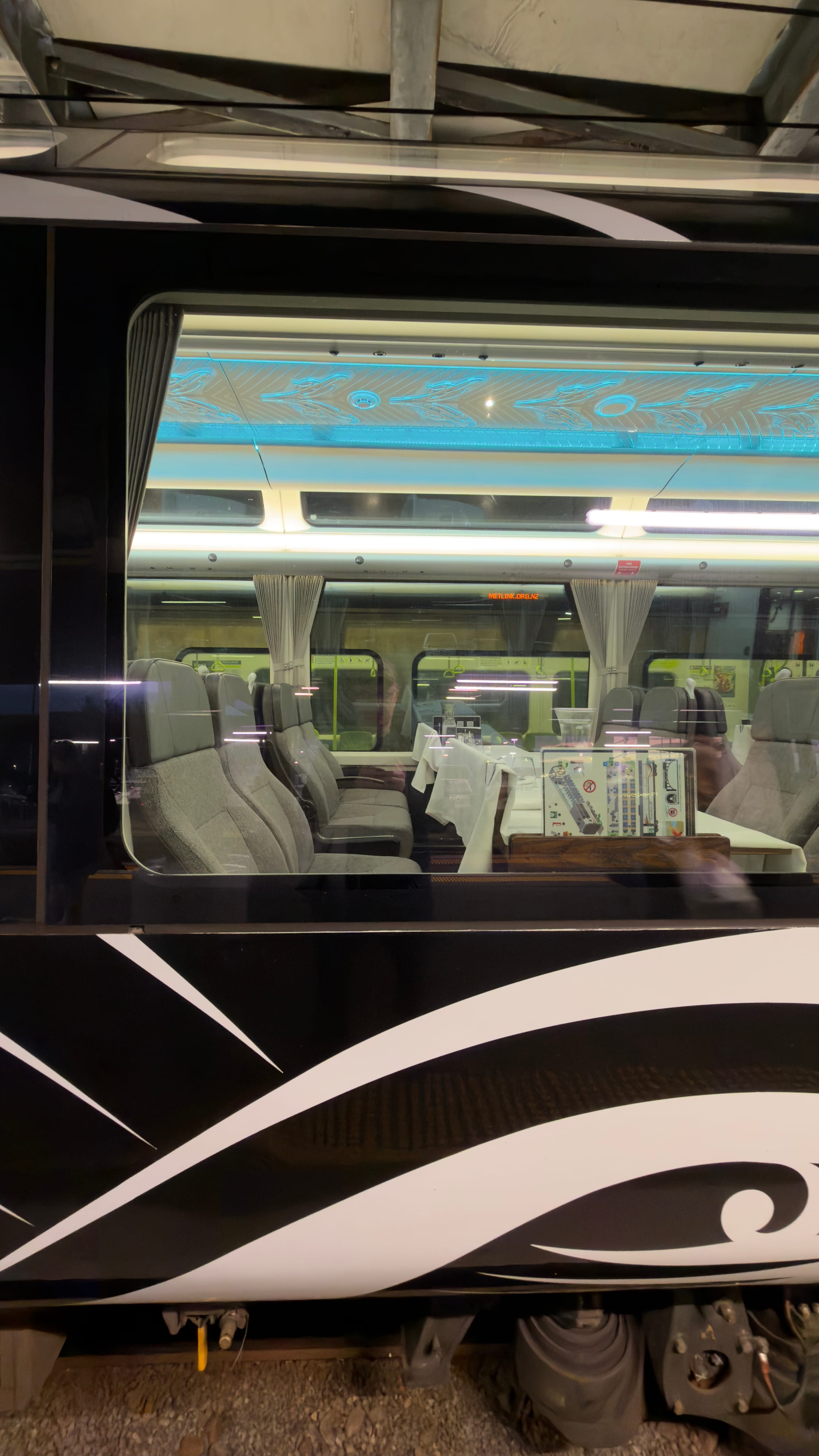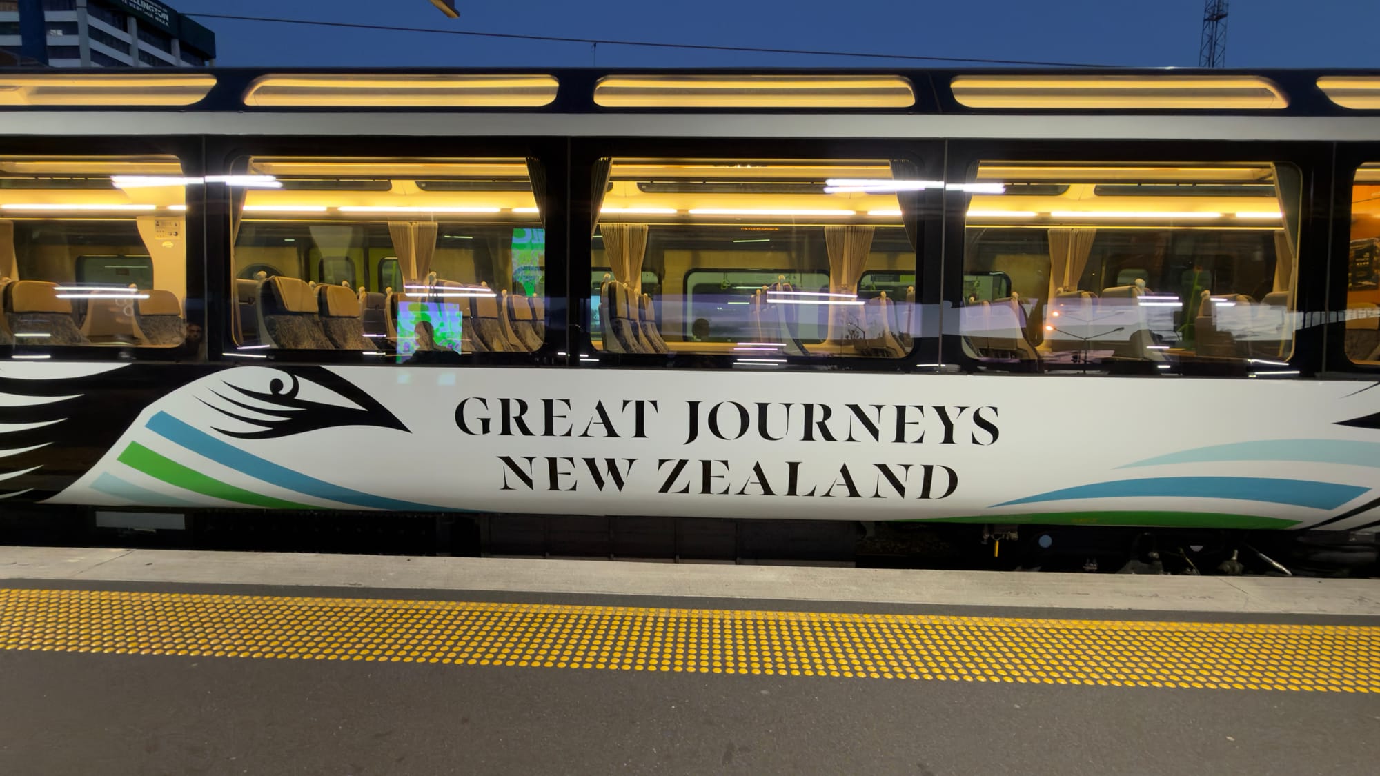 We had an early start and sealed our cases quickly, checked out - this was our seventh checking out - and took a quick taxi ride to Wellington Station. We arrived at 7am for a 6.55am departure. We entered the station and before we even reached the information booth a member of staff guldered at us, Platform 7.” We clearly had a look. That brought a tear to my eye as I have long prided myself in striving hard to look like an obvious tourist. It seems I have finally cracked it. Or maybe it was Mrs Verno. Anyway the place was already bunged with all manner of crazy insomniacs. Every single one of them wearing disgustingly dry clothes. But to the left I espied a small sign, “Scenic Plus.” No queue and an expectant attendant. Like the fabled priority plus with Ryanair. We bypassed the hoi polloi and had our luggage taken from us and our seats in the special carriage allocated. This was going to be good.