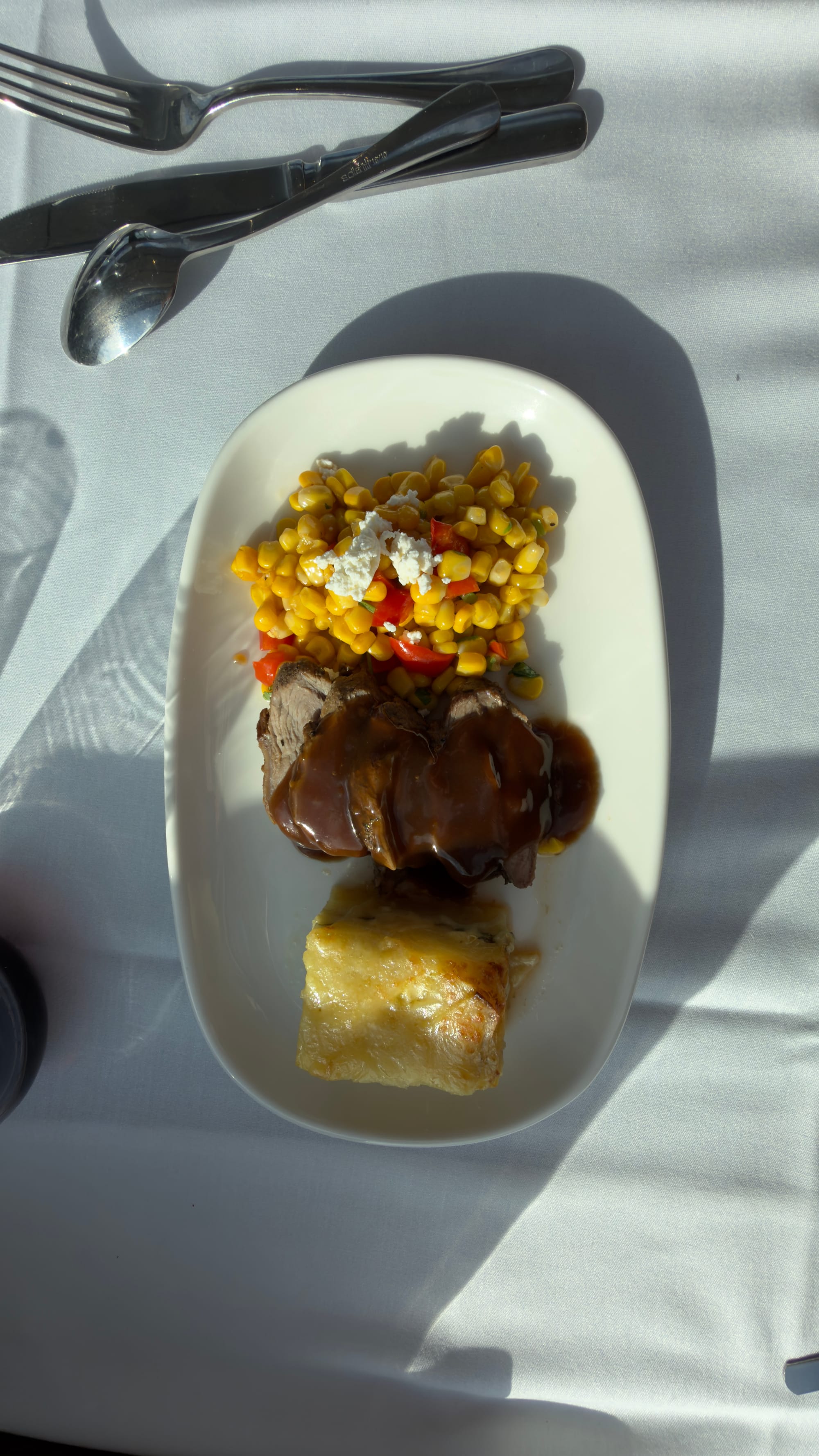 Well, without boring you, I am writing this after eight hours of the best grub, stunning views and most excellent beverages. Chilled out travel taken to the limit. The staff are brilliant and cannot do enough for you. It has taken me ages to write this as I keep having to stop to take a photograph or order a beverage. I know. Don’t feel sorry. It is my burden to carry. Mrs Verno seems to be coping better than me if truth be told but don’t say.