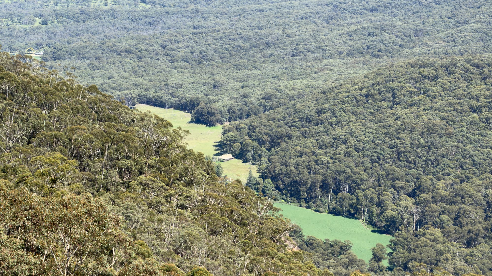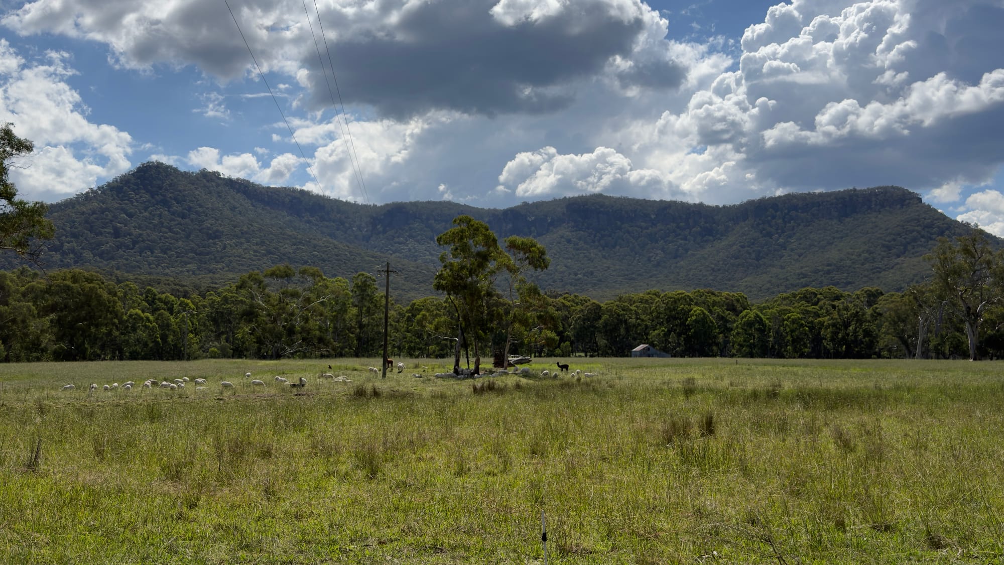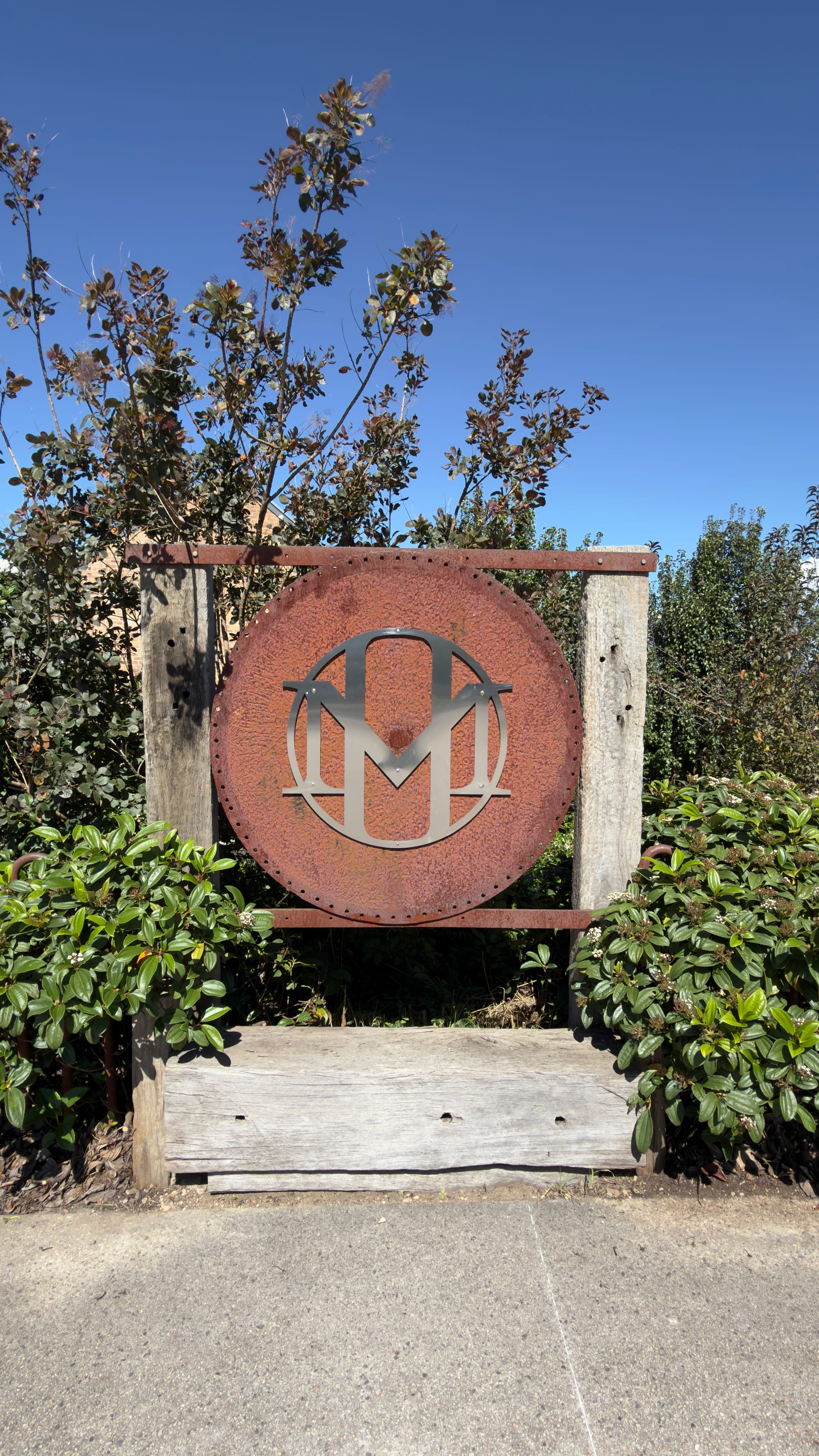 We then boarded Excalibur again as we headed down the only road into the Megalong Valley. As we descended we passed through rainforest before the landscape became one of sprawling grassland. Ideal for sheep and vineyards. We were stopped at traffic lights and my natural curiosity was piqued by a small notice on a smooth barked tree at the road’s edge. Despite its proximity Steven, our dependable host and guide could not see what I was talking about. I was even taking a photo to help point him in the right direction just as he declared “you mean the telegraph pole”. In my defence it was made of concrete and not dissimilar to the ubiquitous gum trees. That’s my story and I’m sticking to it.