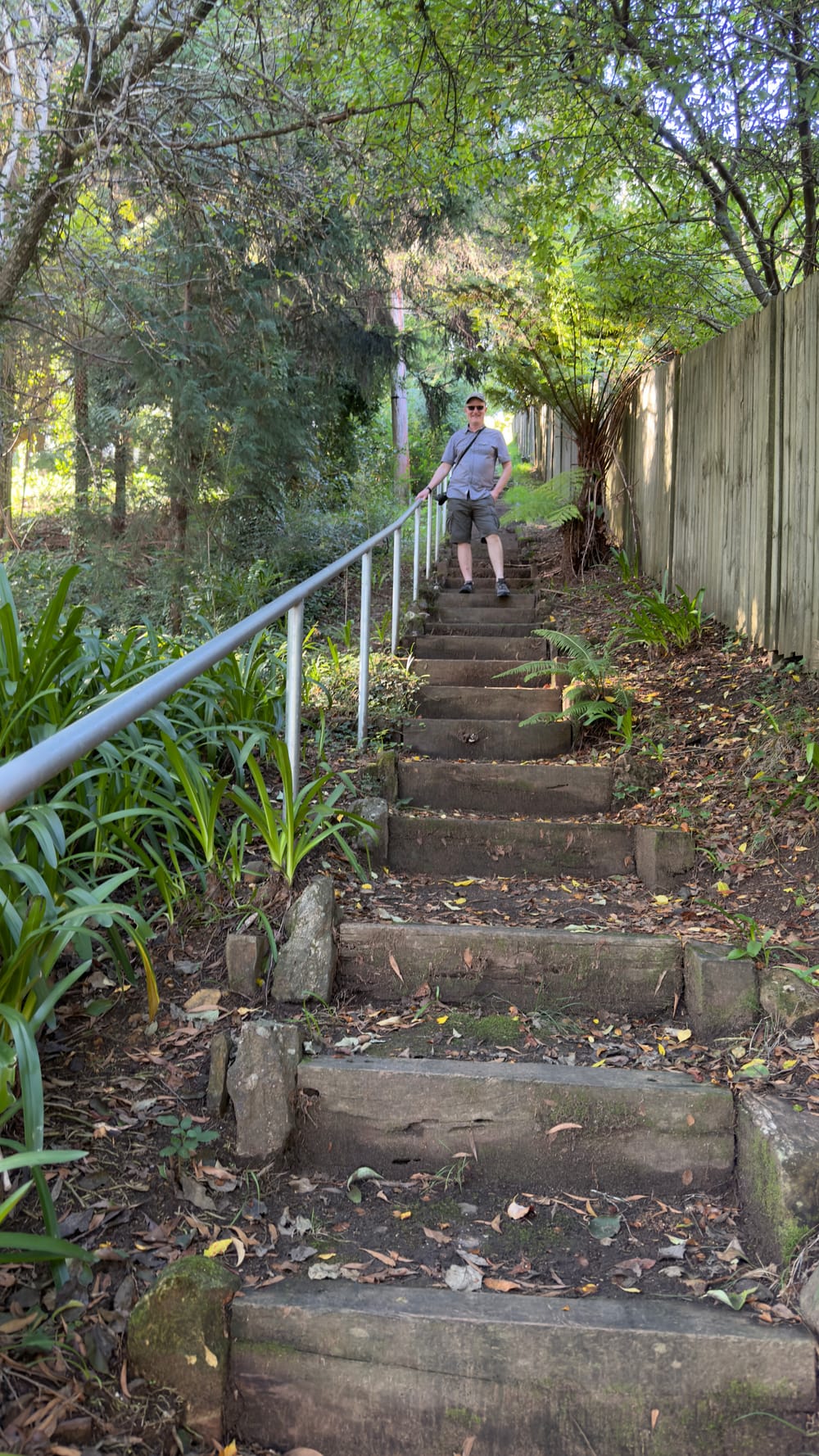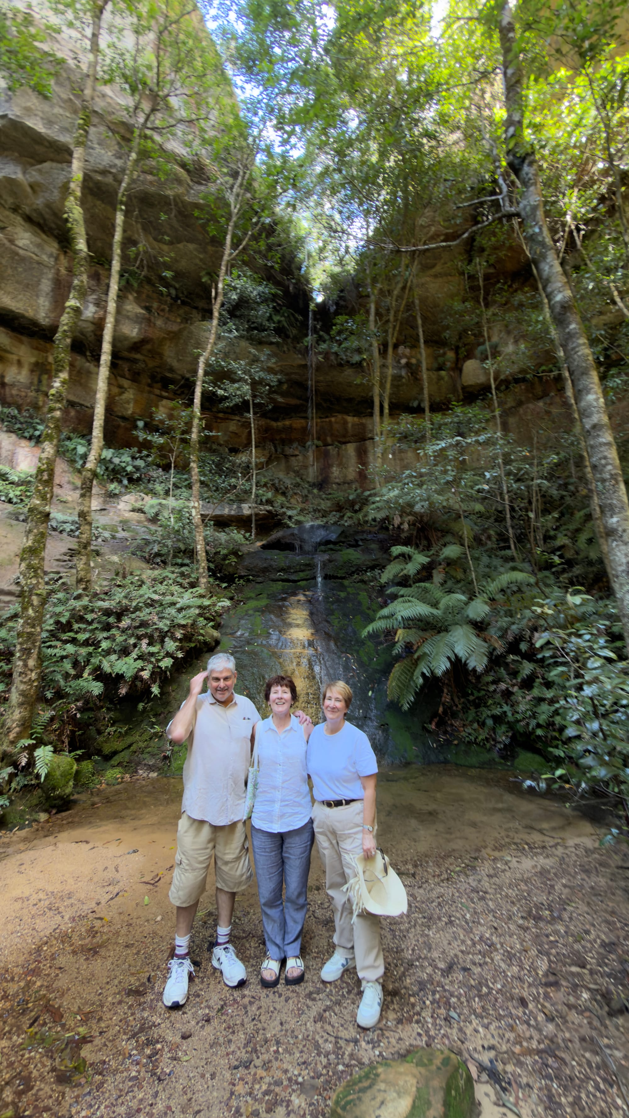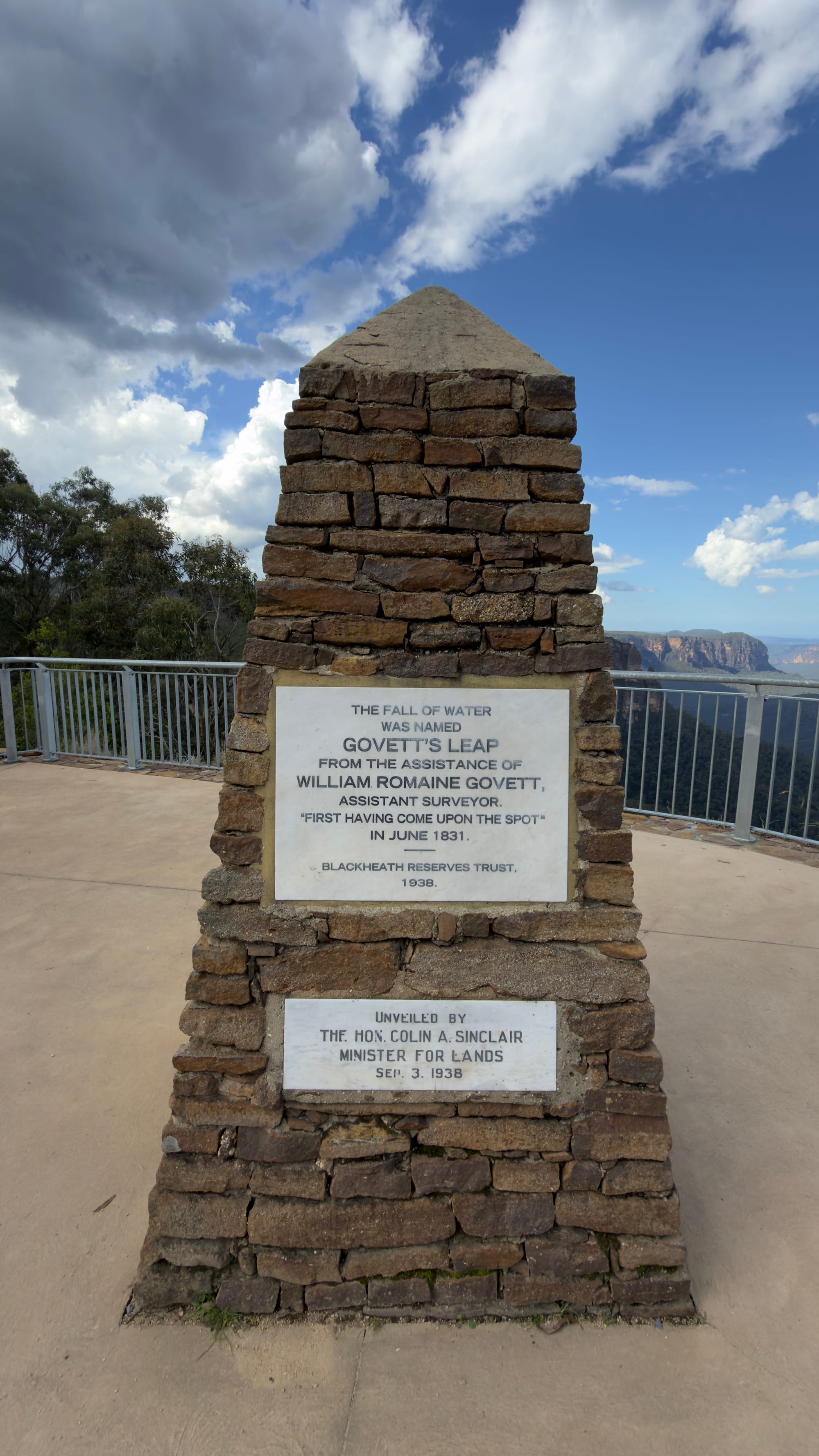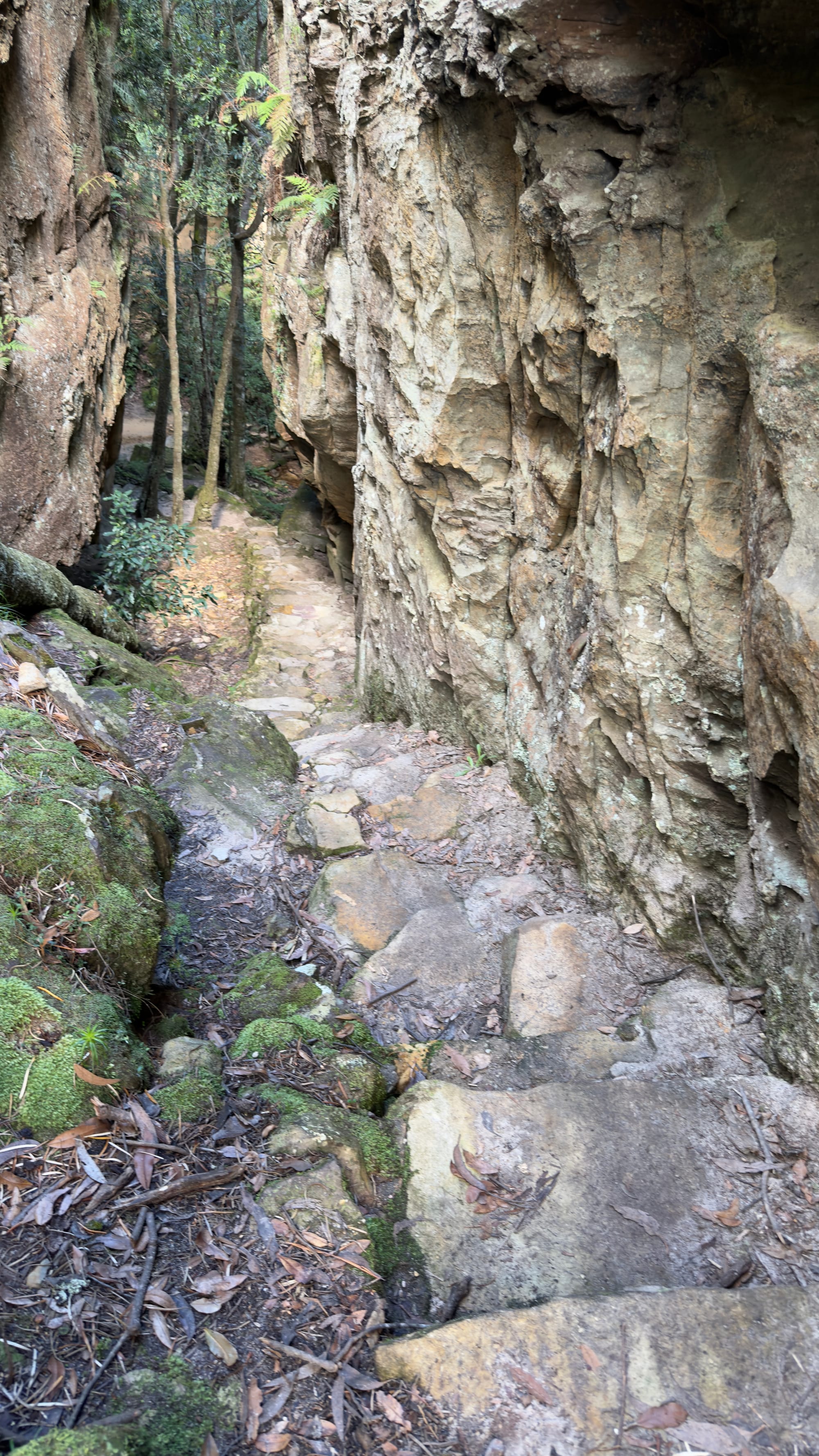 This was essentially our turn around point and we headed back up to Blackheath but there was one final spot Steven wanted us to experience. We pulled up at a non-descript halt and followed Steven into the bush. We came upon a series of steps hewn into the rock that descended down as far as the eye could see. Mrs Verno is happy to tackle anything but did need a little help as we finally ended in a deep crevasse that had famously been used in Mad Max Beyond the Thunderdome. All the kit having been lowered in. Well it took twenty minutes to descend. Mrs Verno was out in less than five now that way was familiar. This was the inspiration for the title of today’s blog. Strangely the name of this deep crevasse was The Mermaid’s Cave Walk. Well we headed through Blackheath to a lookout point called Govett’s Leap. Stunning. See the pictures. My words can’t do it justice. the leap or waterfall was named after Mr Govett but Blackheath famously has a statue of said Mr Govett on a horse appearing to jump into the unknown. Much more exciting.