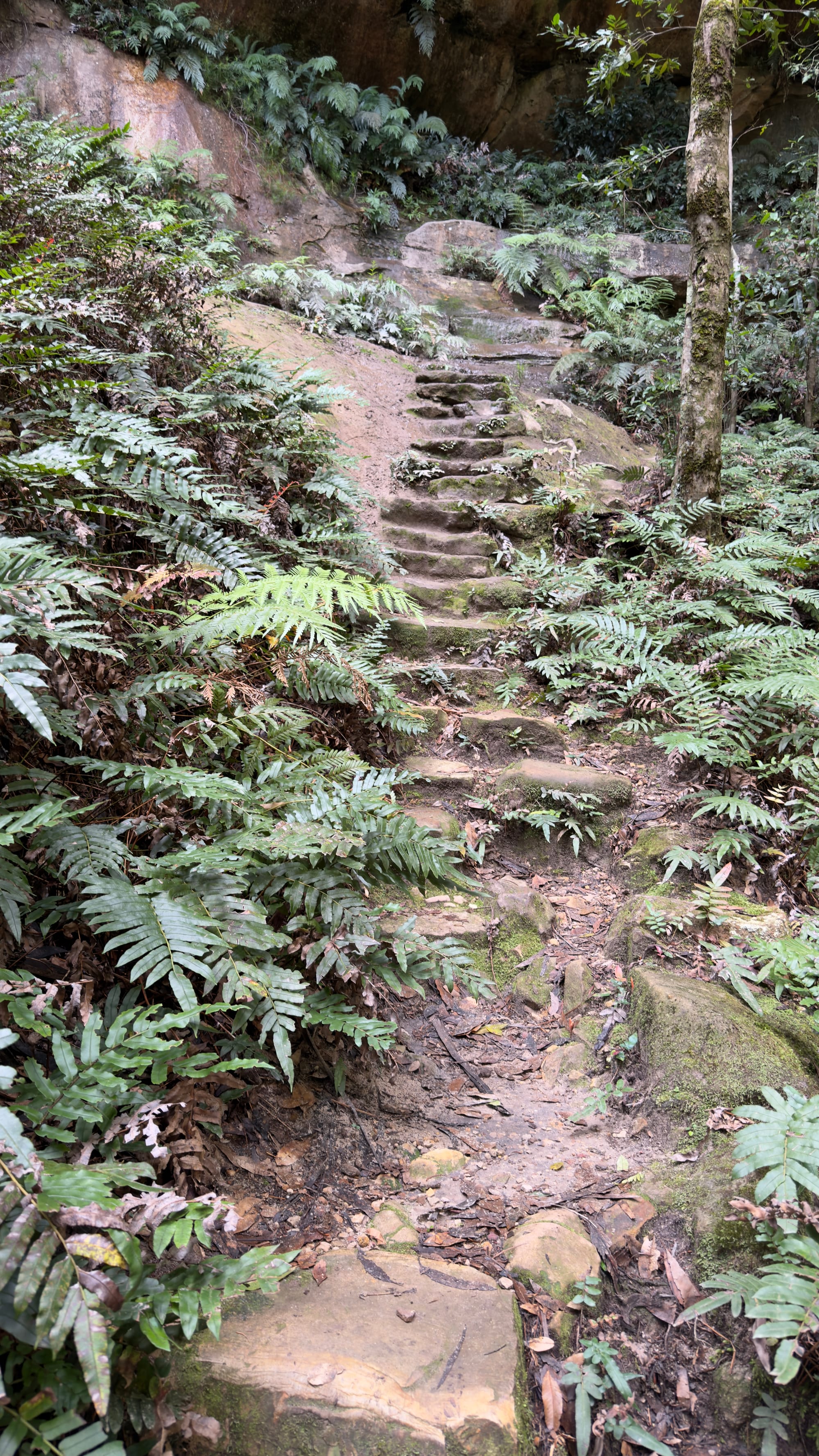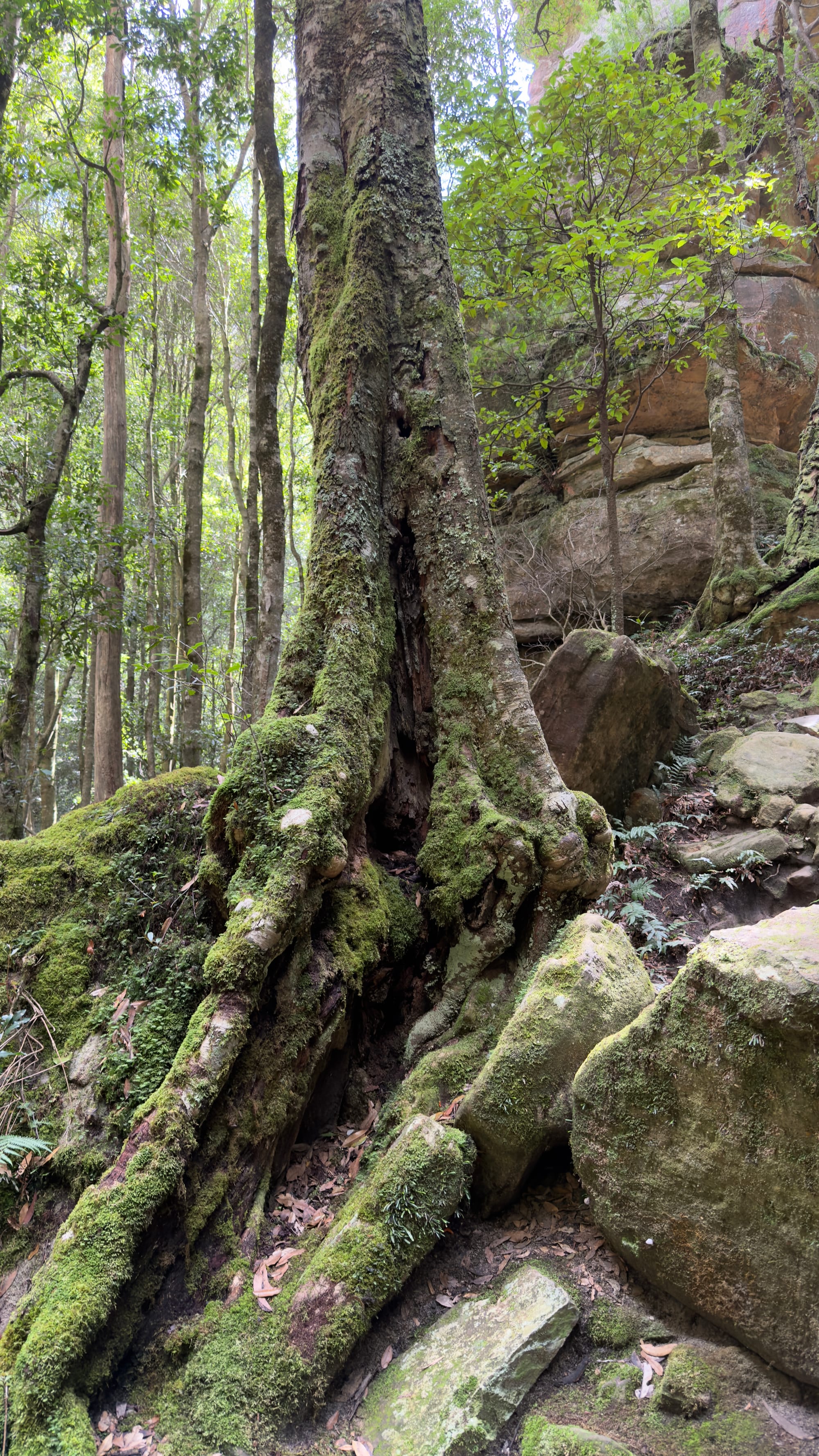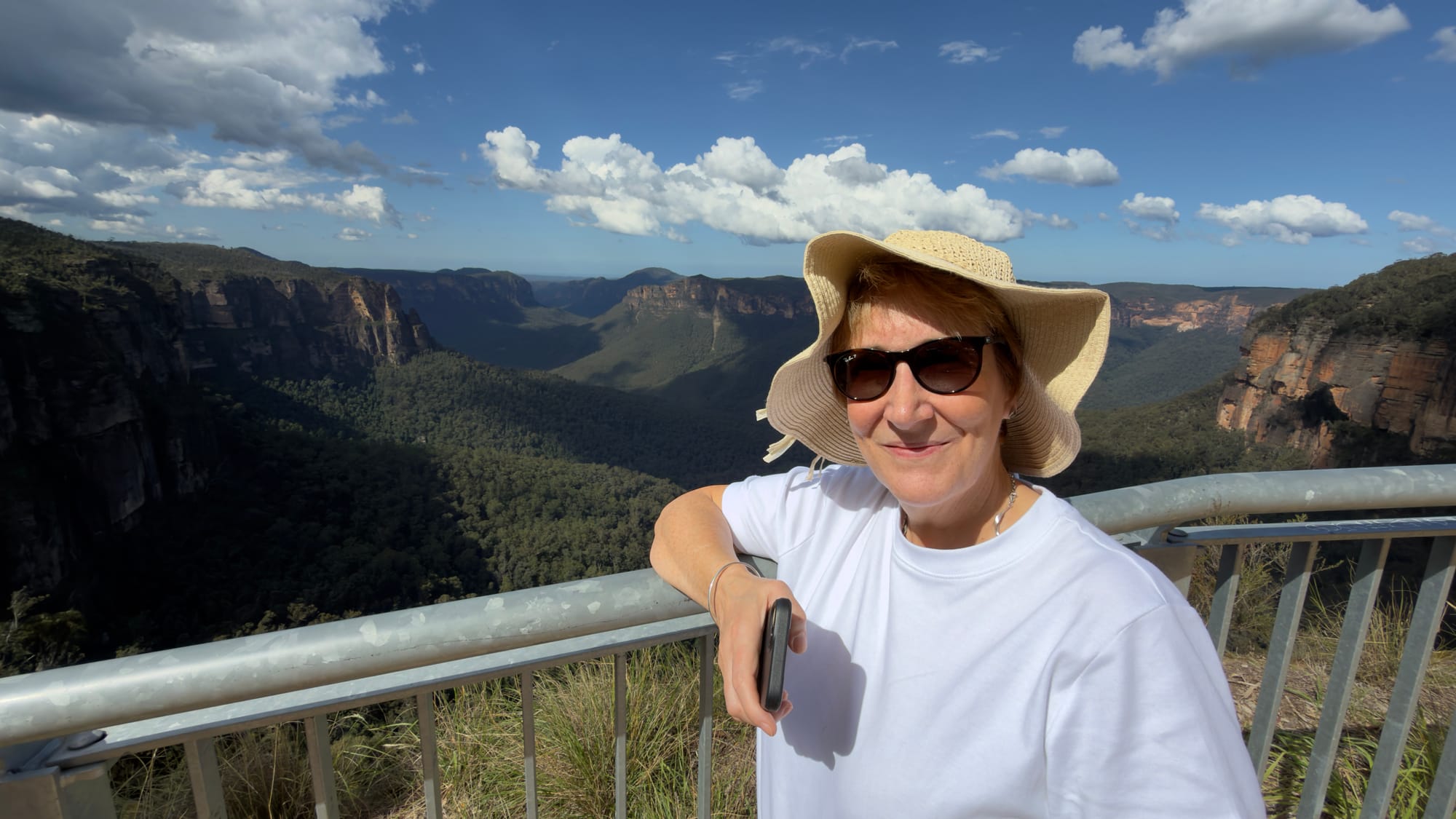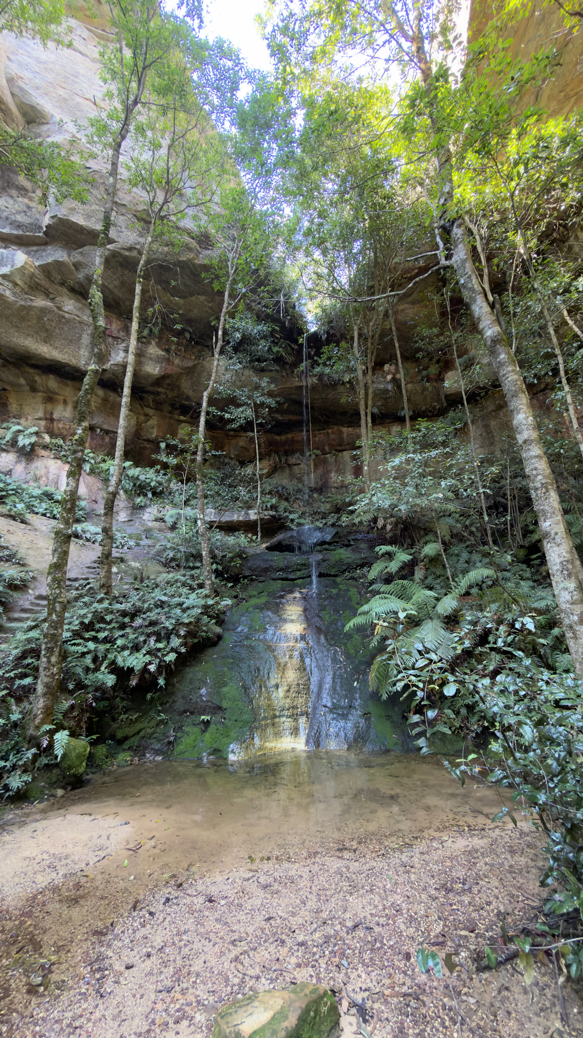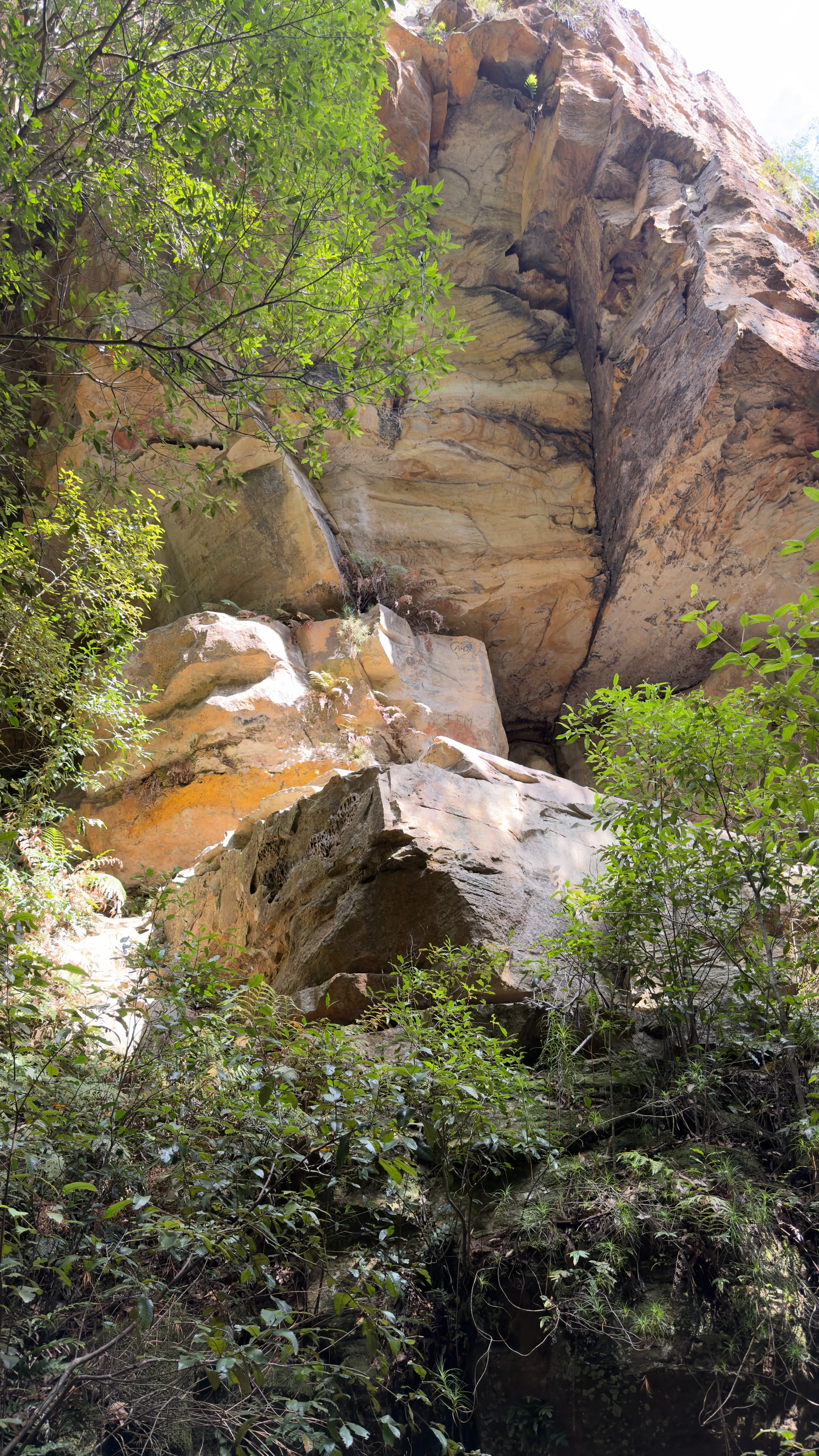 This was essentially our turn around point and we headed back up to Blackheath but there was one final spot Steven wanted us to experience. We pulled up at a non-descript halt and followed Steven into the bush. We came upon a series of steps hewn into the rock that descended down as far as the eye could see. Mrs Verno is happy to tackle anything but did need a little help as we finally ended in a deep crevasse that had famously been used in Mad Max Beyond the Thunderdome. All the kit having been lowered in. Well it took twenty minutes to descend. Mrs Verno was out in less than five now that way was familiar. This was the inspiration for the title of today’s blog. Strangely the name of this deep crevasse was The Mermaid’s Cave Walk. Well we headed through Blackheath to a lookout point called Govett’s Leap. Stunning. See the pictures. My words can’t do it justice. the leap or waterfall was named after Mr Govett but Blackheath famously has a statue of said Mr Govett on a horse appearing to jump into the unknown. Much more exciting.