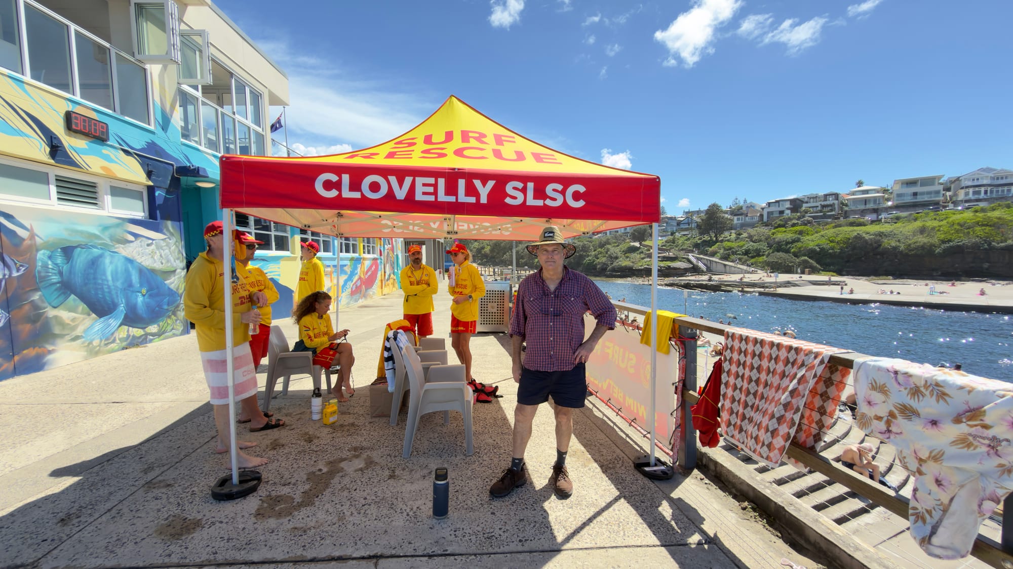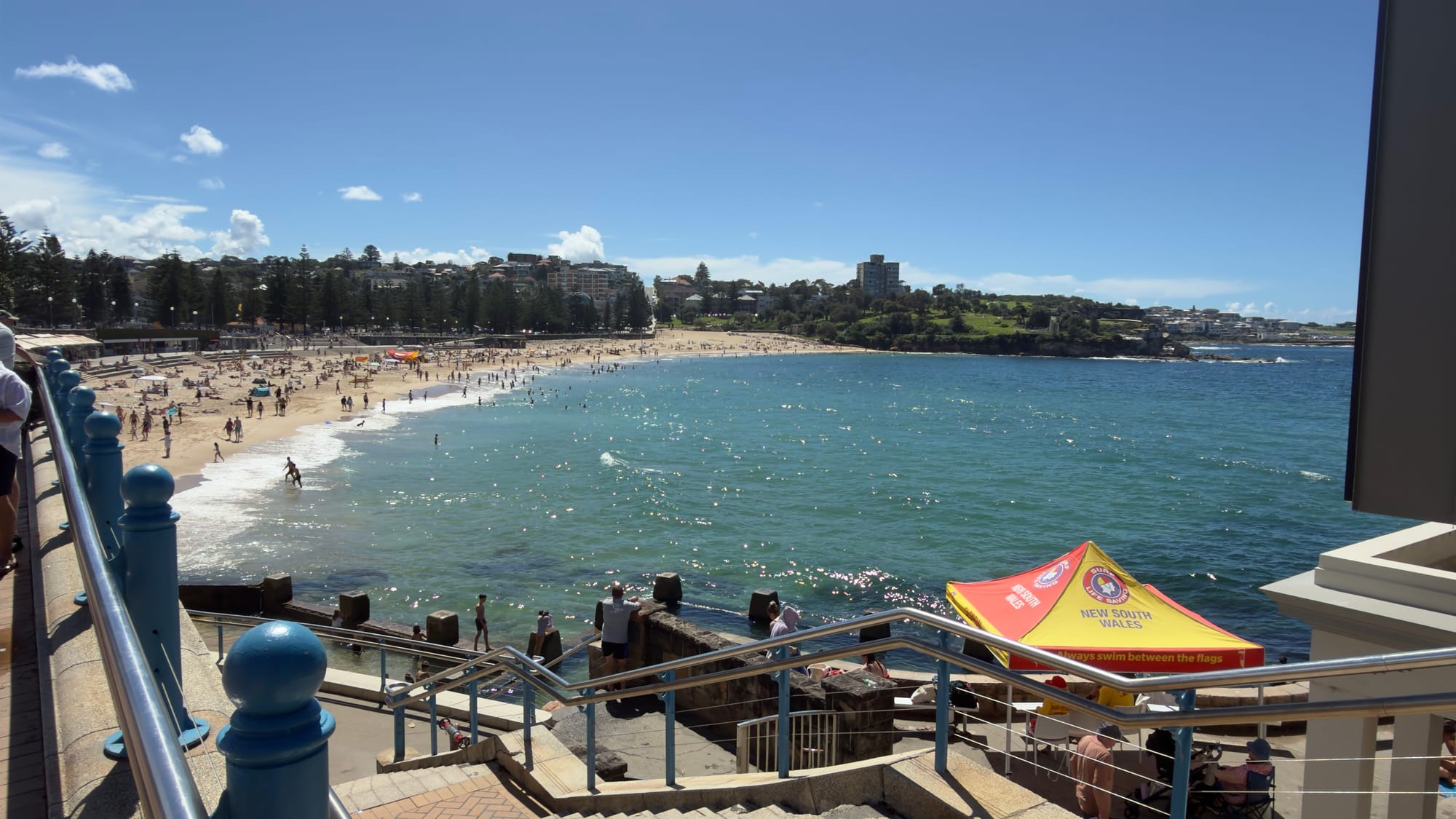 Our first day was to moderated by Steven as driver and Susan as navigator and motivator in chief. After the most enjoyable and informative of missed turns, fortuitously blocked roads and just too late directions we had seen around most of the Rocks area of Sydney and where heading towards North Sydney over the Harbour Bridge. We stopped off at Mosman Bay Marina for coffee before heading to Clovelly, Coogee and Bondi. We met up with Clovelly Surf Rescue and I managed to scrounge sun cream from them. It came in a litre sized pump dispenser, which is the future for us gingers in these climes. We had fish and chips in Coogee Beach. Lovely. The fish was New Zealand Hoki which is a type of Hake, very nice. One thing to note is that vinegar is not a thing here. Then we headed to the beach for a paddle in the Pacific Ocean. You have to. A drive though Bondi showed us the glory of the beach and the landscape of the recent tragedy. The whole trip through the city and its diverse boroughs was brilliant. All most ably narrated along the way by Steven and Susan. Absolutely priceless.