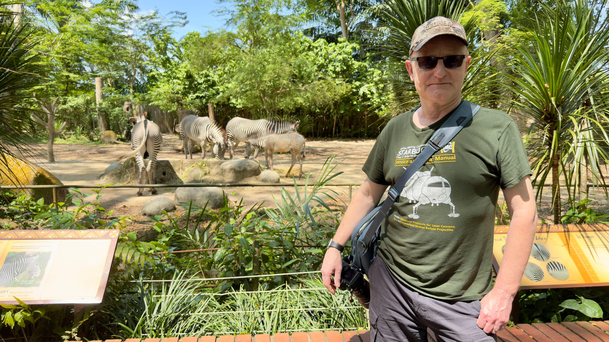 We began our last full day with a happy birthday to Mrs Verno. Her birthday treat was to walk around Singapore Zoo in 33 degrees heat with humidity that literally sucked the life clean out of you. Shucks. That’s the type of guy I am. So a taxi was required which duly arrived and we winged our way to a huge campus in the north of Singapore. The area is adjacent to a military base with reassuringly blunt demands to stay out or you will be shot. After three hours walking around the zoo such a prospect had its allure. But I jest. The zoo was great with all the usual stars of the show including our little buddy above. There was lots of shade and helpful volunteers and a gift from god in the shape of a shuttle service that fast tracked the exit process once we had seen enough.