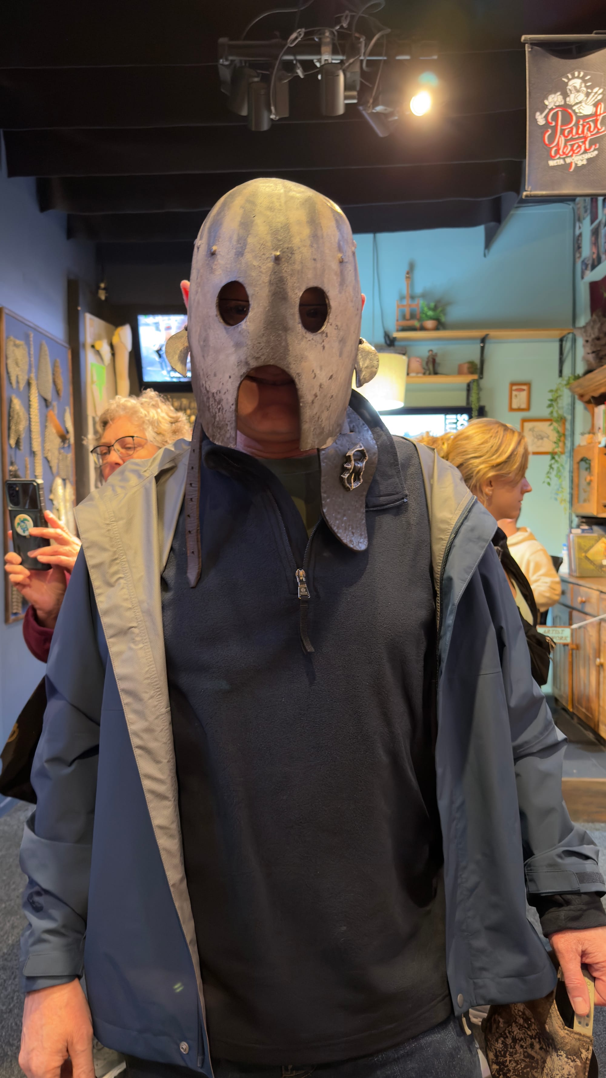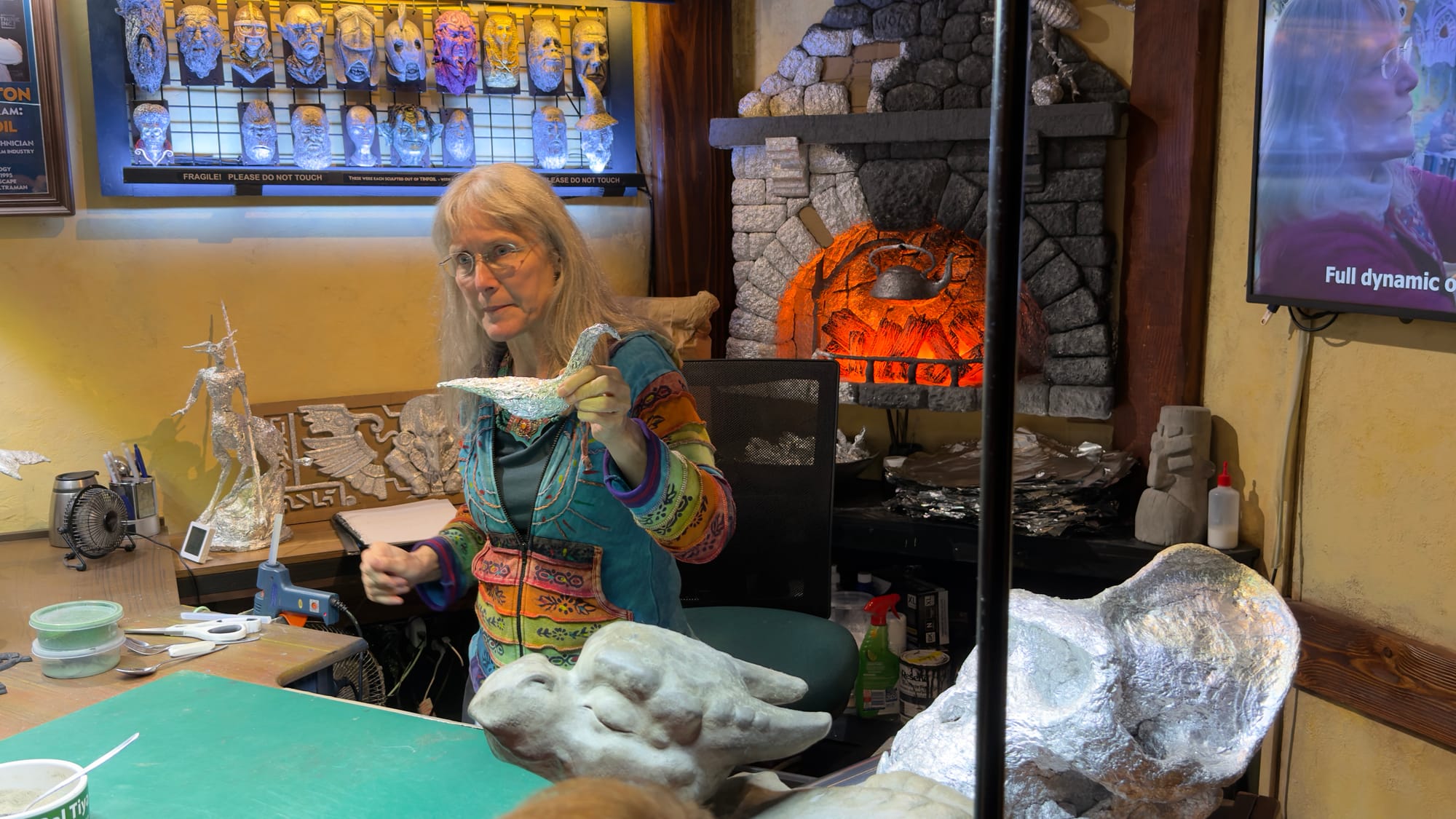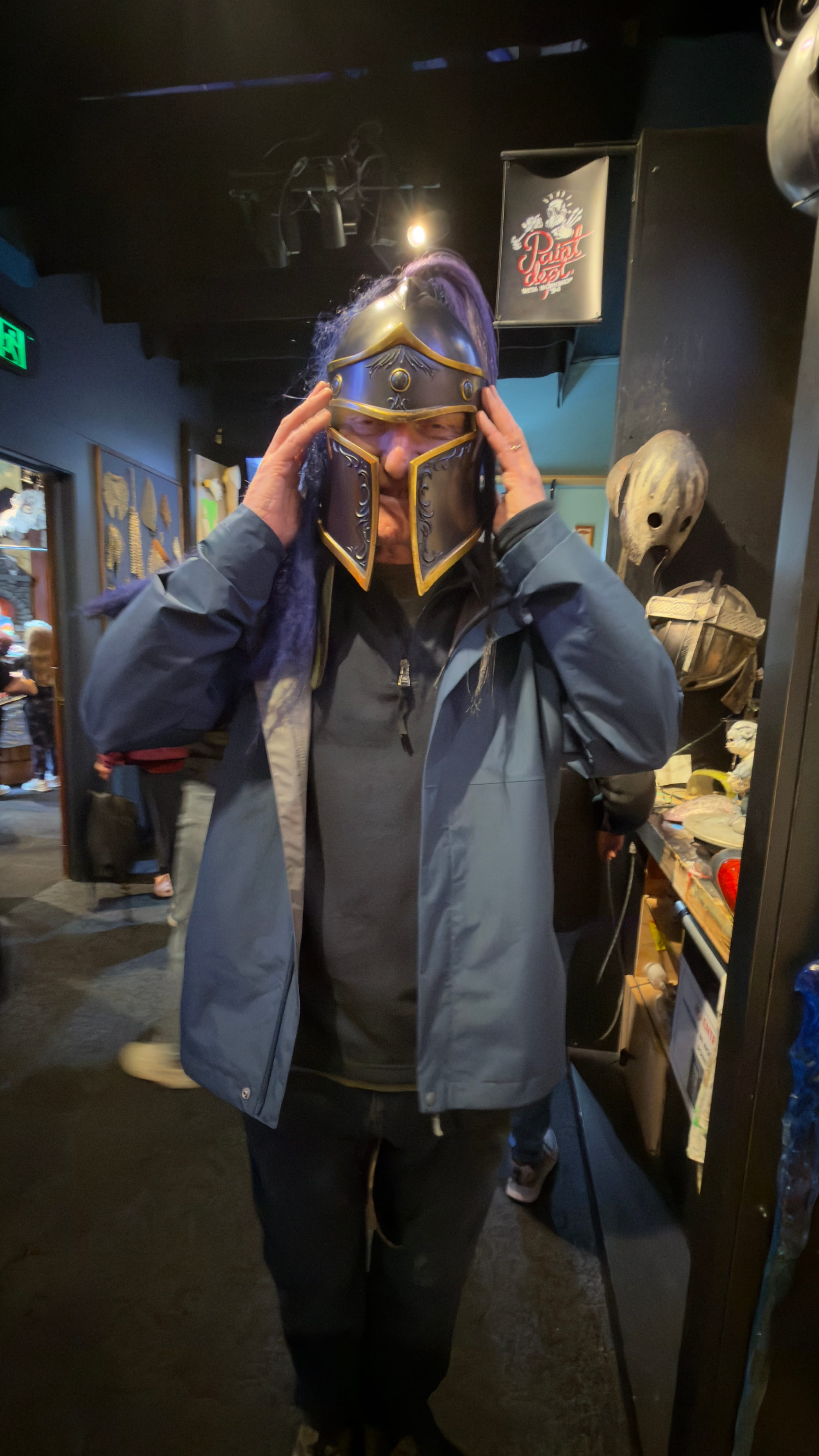 We duly arrived at the WETA tour and it was quite something. A charming young lady took the tour and conducted us between a number of rooms, each with a different focus. We had been told early on to keep our cameras in our pocketses (see what they did there?). Rooms included props such as knives, swords, costumes and collectibles as well as one with a frankly crazy lady who made a living out of using tin foil to make sculptures. We were all forced to give it a go. Mrs Verno was very proud of her whippet head. I thought my four legged creature was marginally better.
