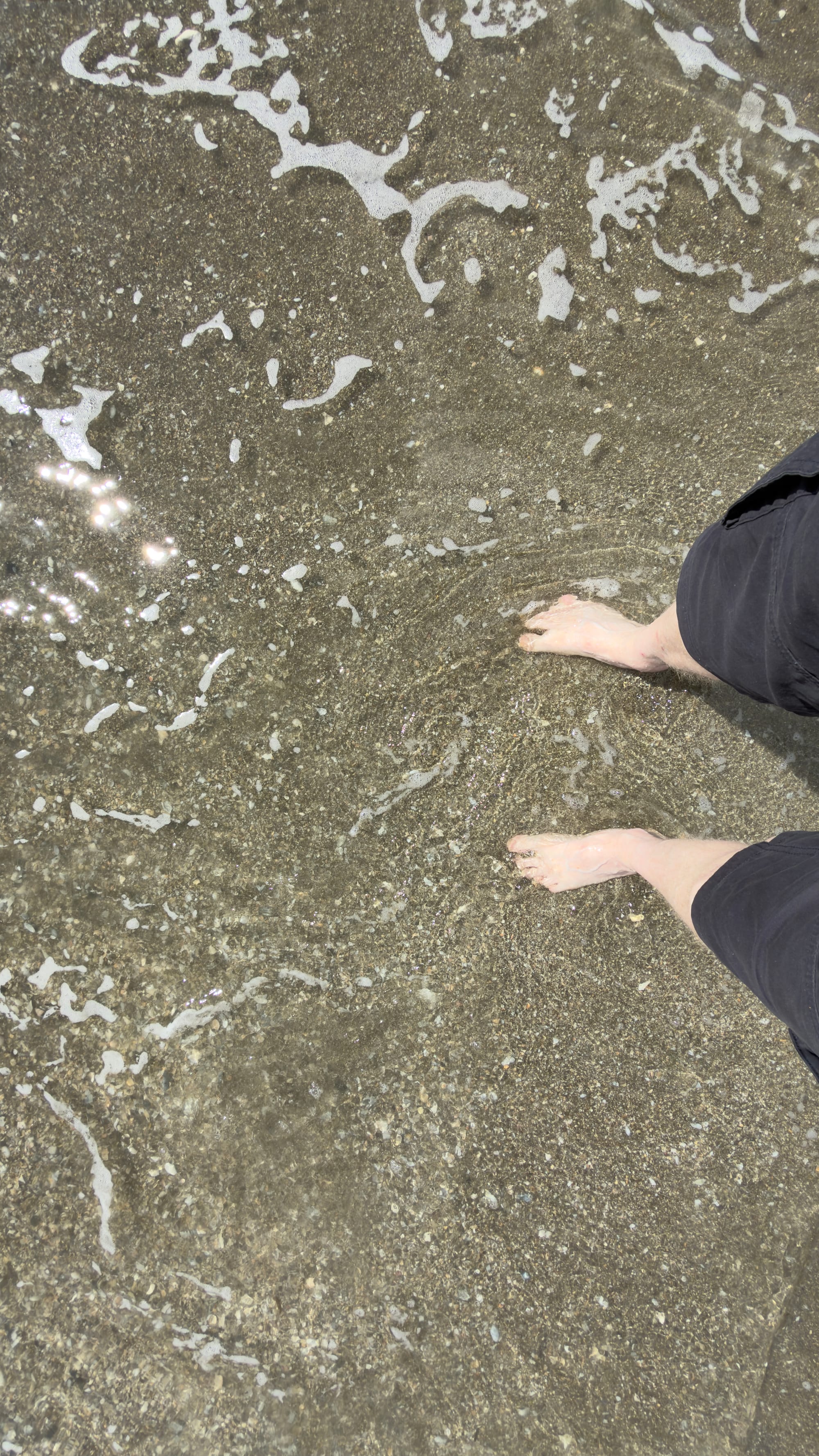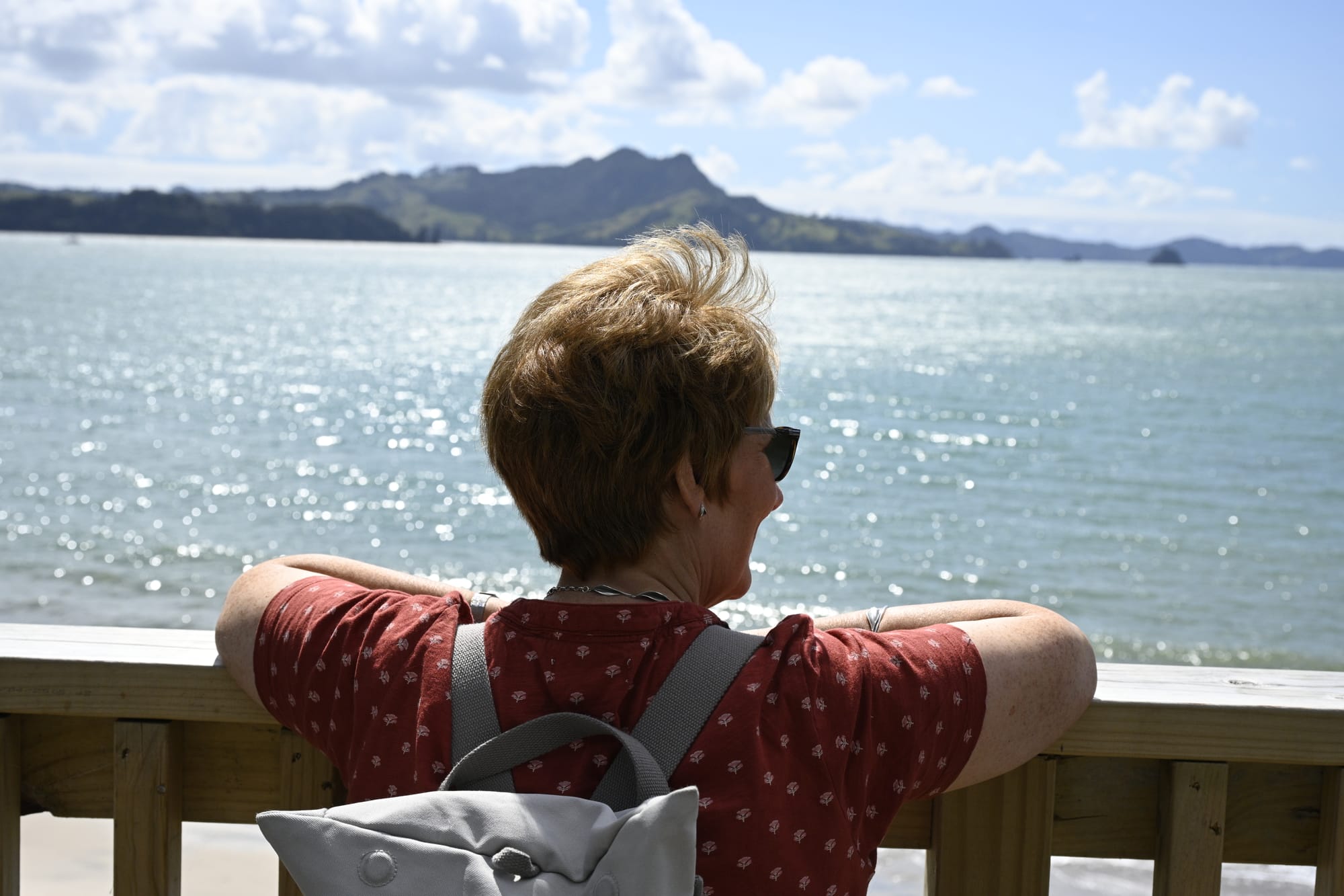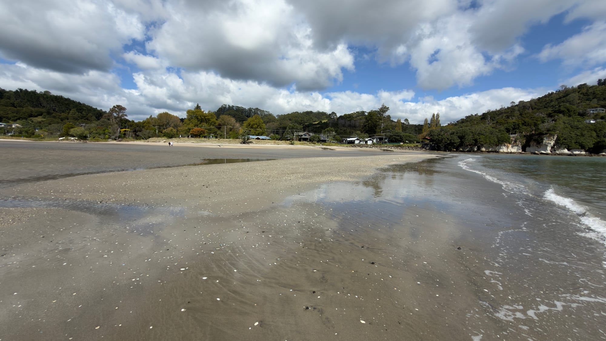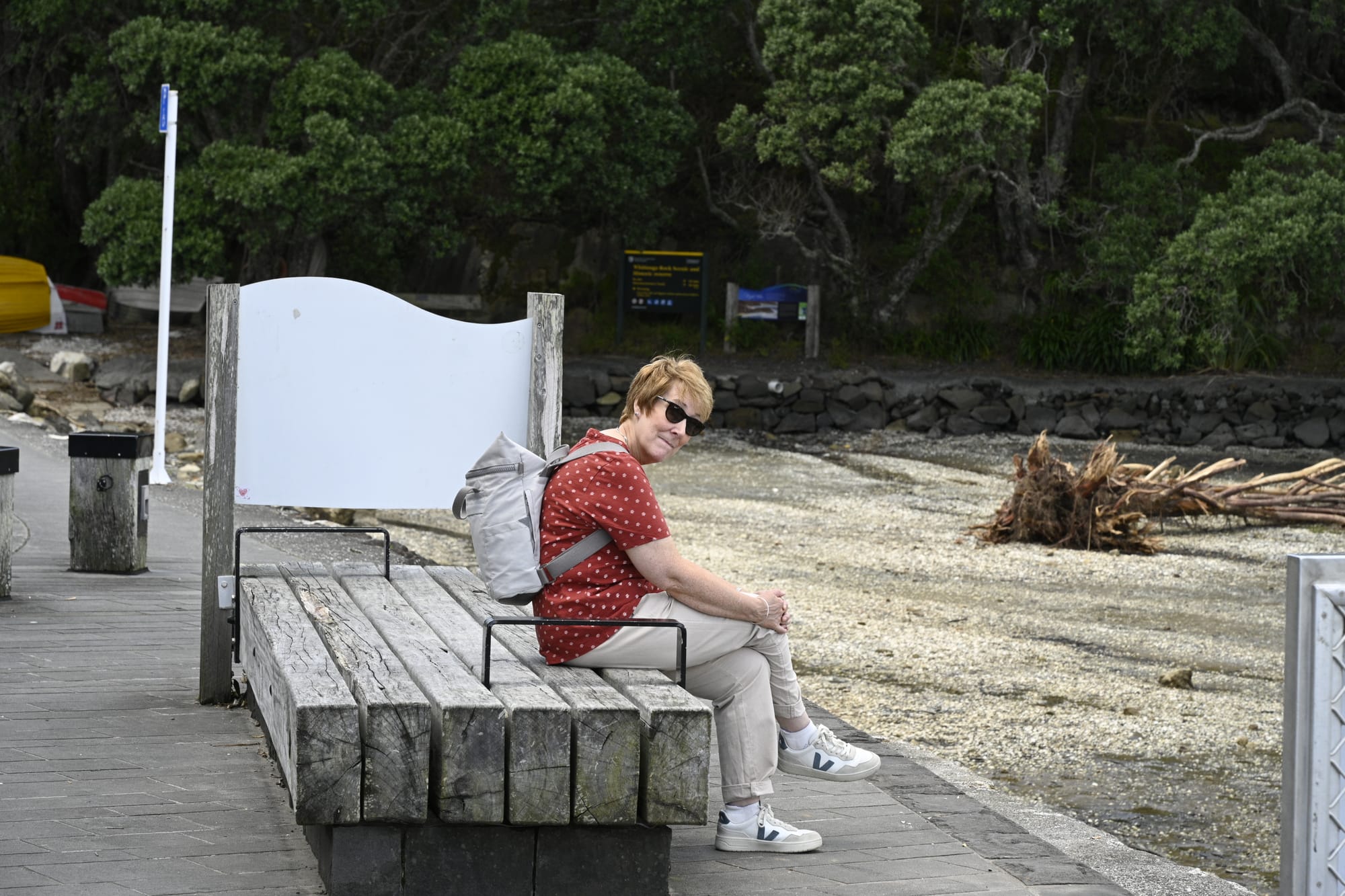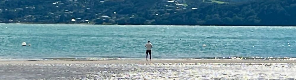 Well the beaches over on the Maramaratotara Bay side were simply lovely and we spent a pleasant hour or so just taking it all in. On Flaxmill Beach I decided that it was time to bless this part of the Pacific with my feet again. Last time was Clovelly Beach in Sydney, remember. The water was lovely and a little time was spent dandering up and down. It was during this that Mrs Verno utilized the zoom on her phone to capture an unflattering image of yours truly. All I can say is nothing untoward is going on and we found a toilet soon after.