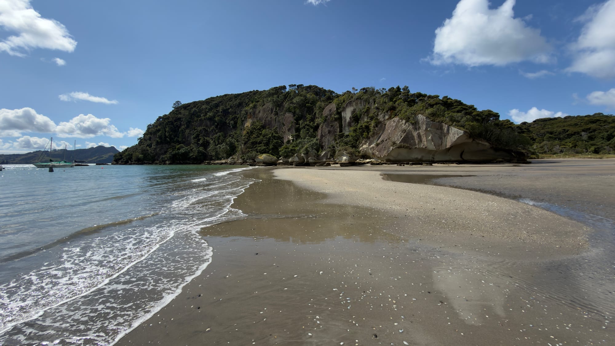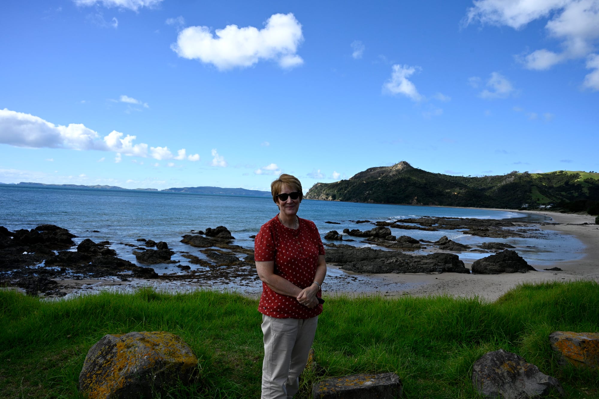 We boarded the Outlander on return across the Strait of Don’t Snooze or You’ll Miss it. I was feeling brave and thought we would take a short run to the north of the peninsula to Matarangi. The twists and turns of yesterday paled to nothing as we pirouetted our way at a snail’s pace up and then down to the coast again. Oh my god. Seriously taxing driving. But it was worth it as a whole new vista presented itself. Stunning.
