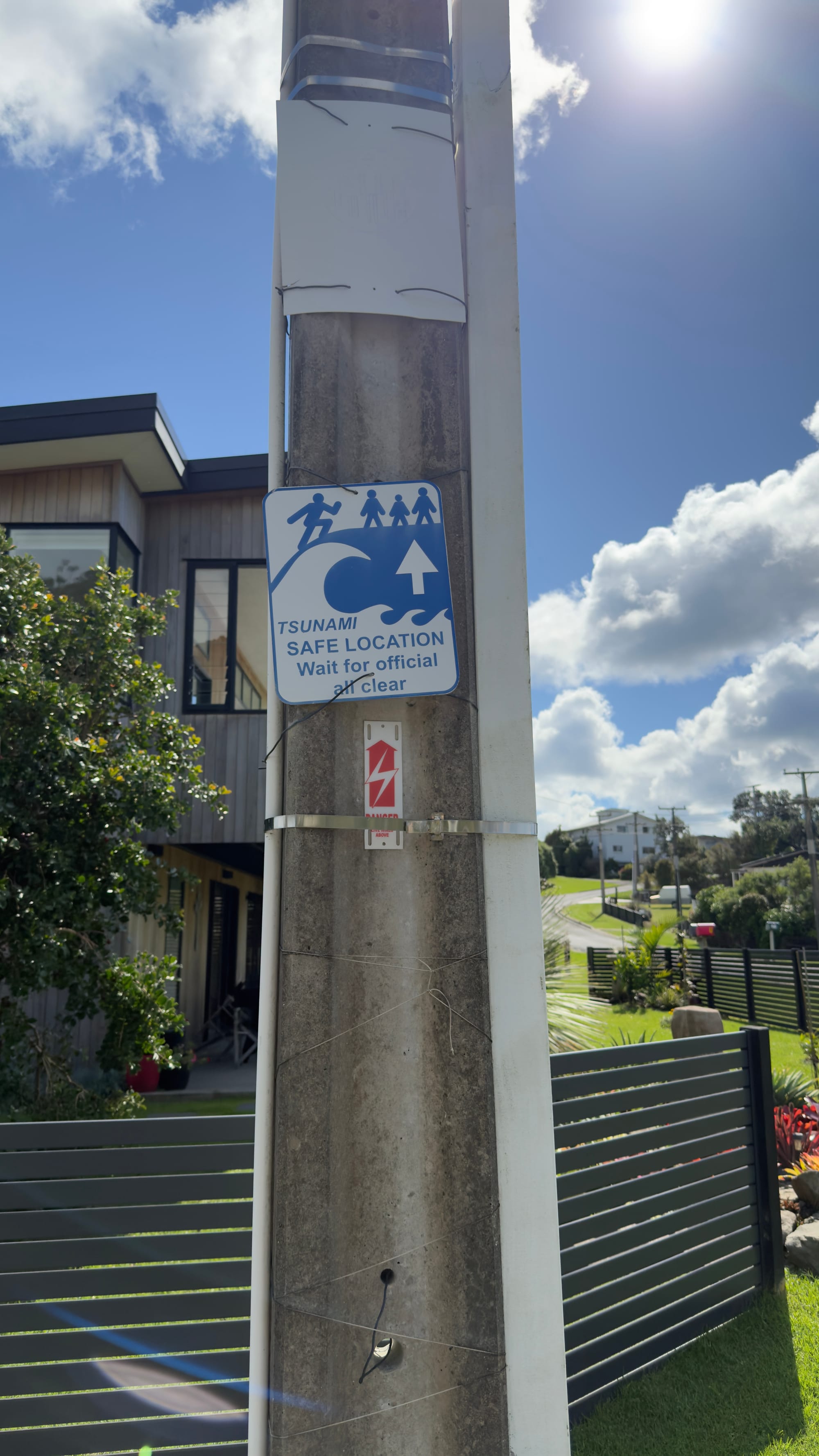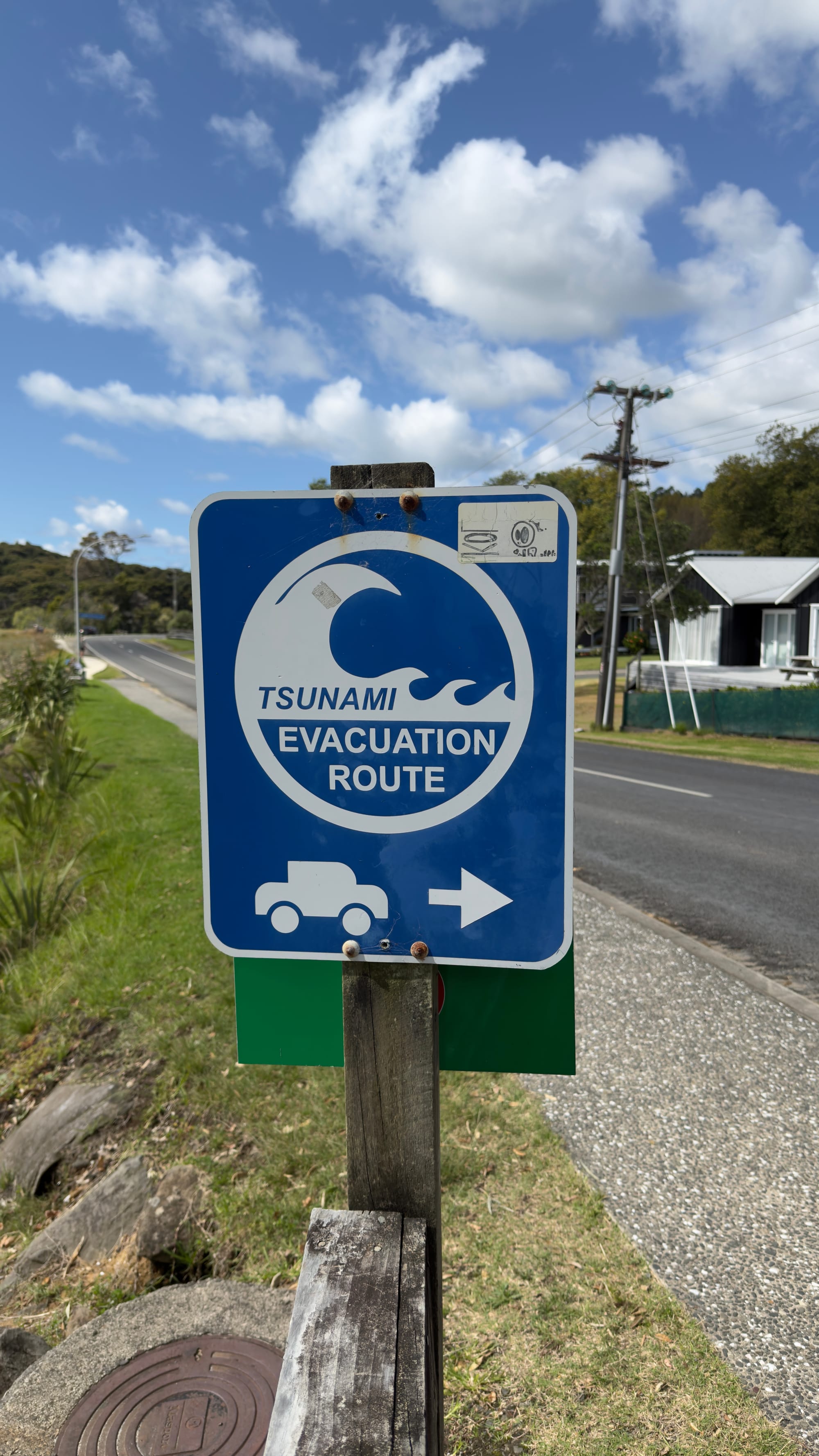A few signs caught my eye on the return walk. One echoed one seen in Wellington and highlighted that we were in a major earthquake zone. Puts Storm Dave into perspective.