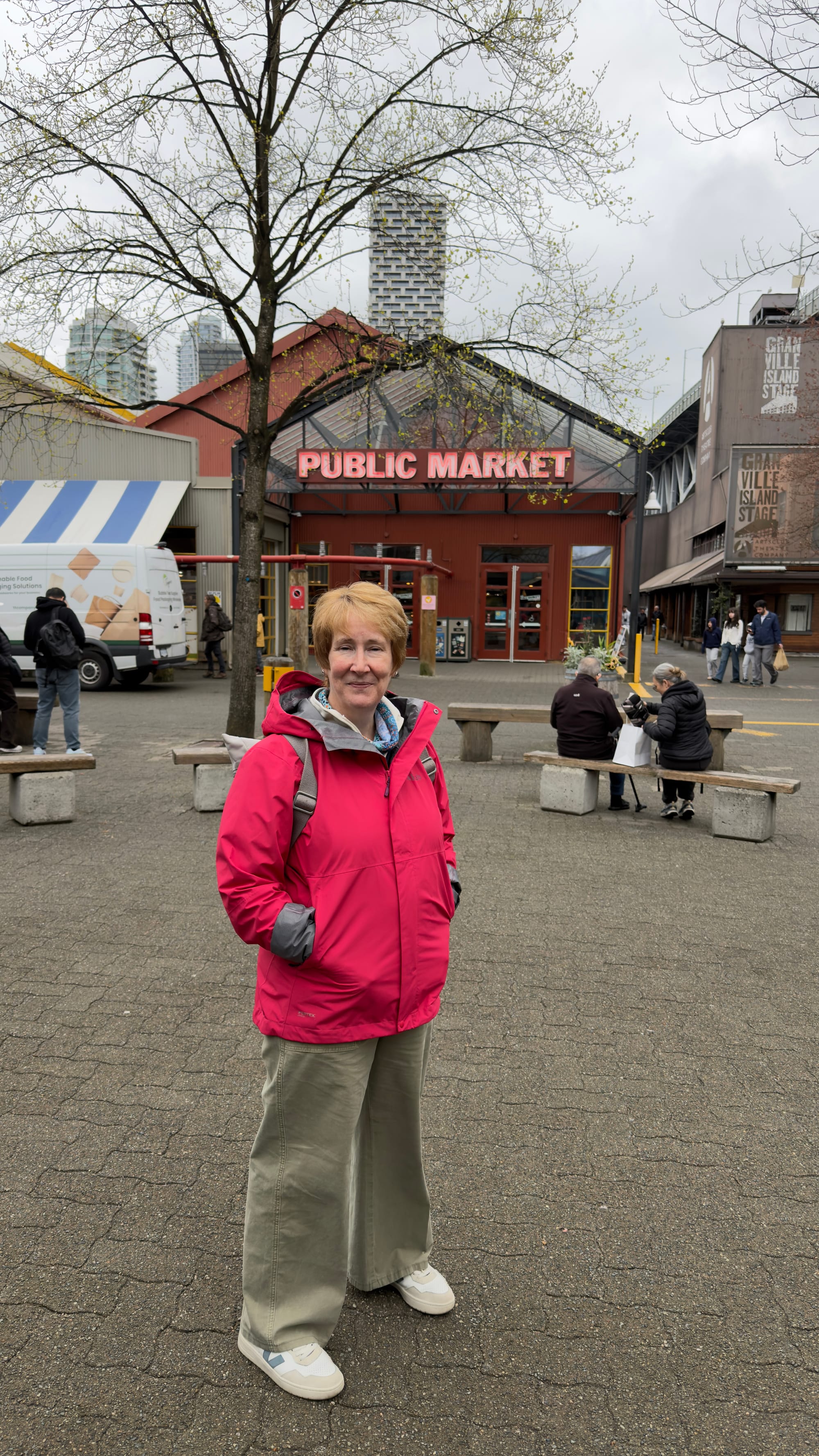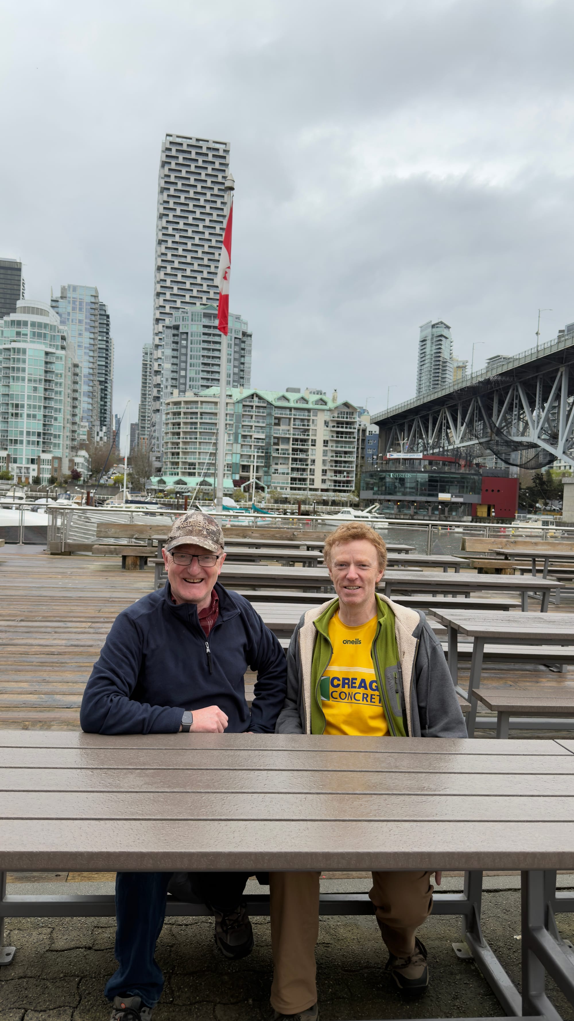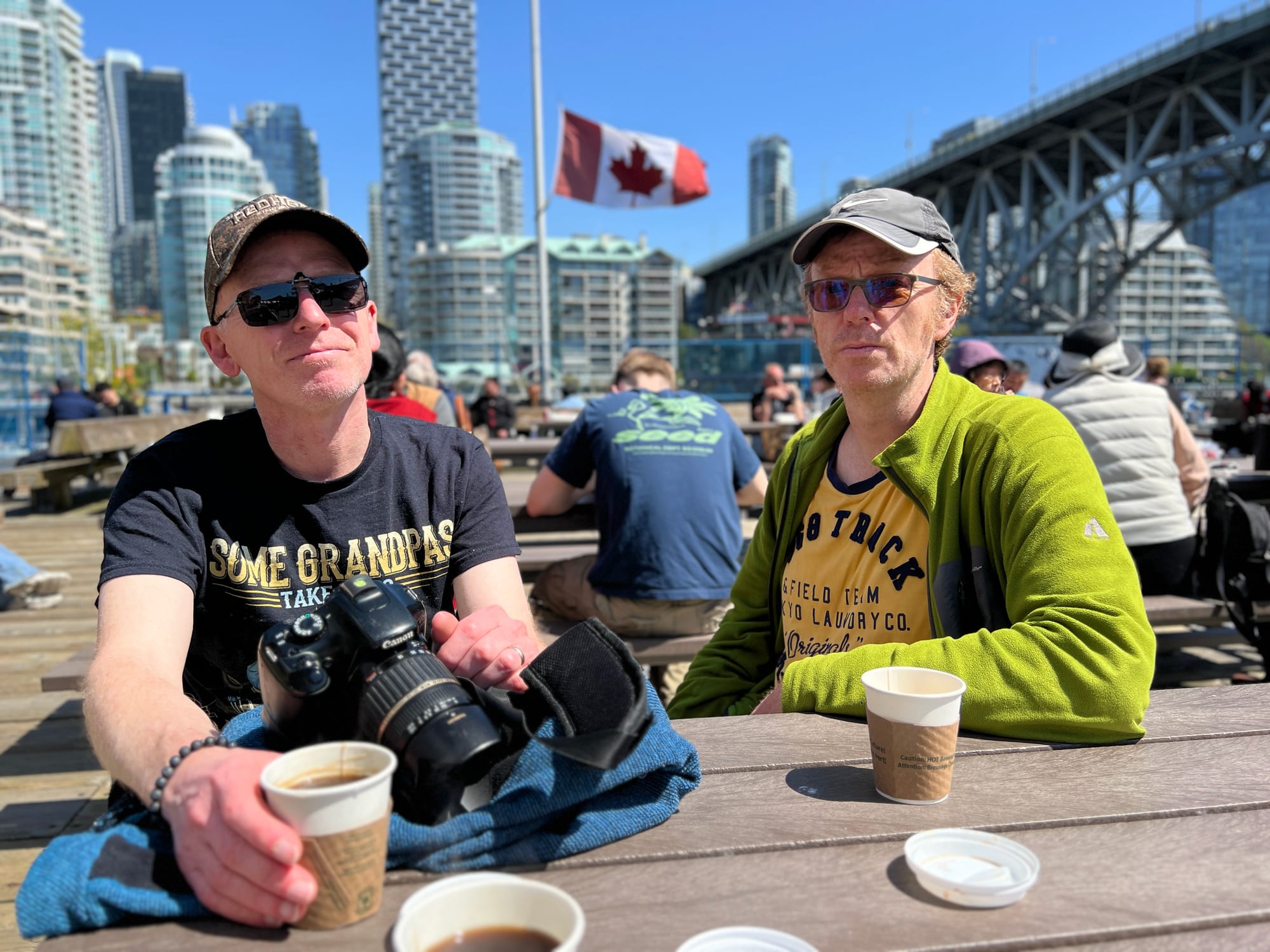 A great night’s sleep followed. We had Sean’s famous porridge to look forward to. Michael will remember this from last year, we called it the StoolMaker. But no, a lovely breakfast of bacon, eggs, croissants and avocado. Set up nicely for the day. Ciaran set off for his first lesson in learning to drive a big truck. 18 gears and no experience of stick shift. Should be fun. We looked forward to hearing how he got on later. The two Vernos and Mrs Verno set off for a road trip that finally took us to Granville Island. A good explore, a piece of jerky and a cup of coffee and then we recreated a photo from last year.