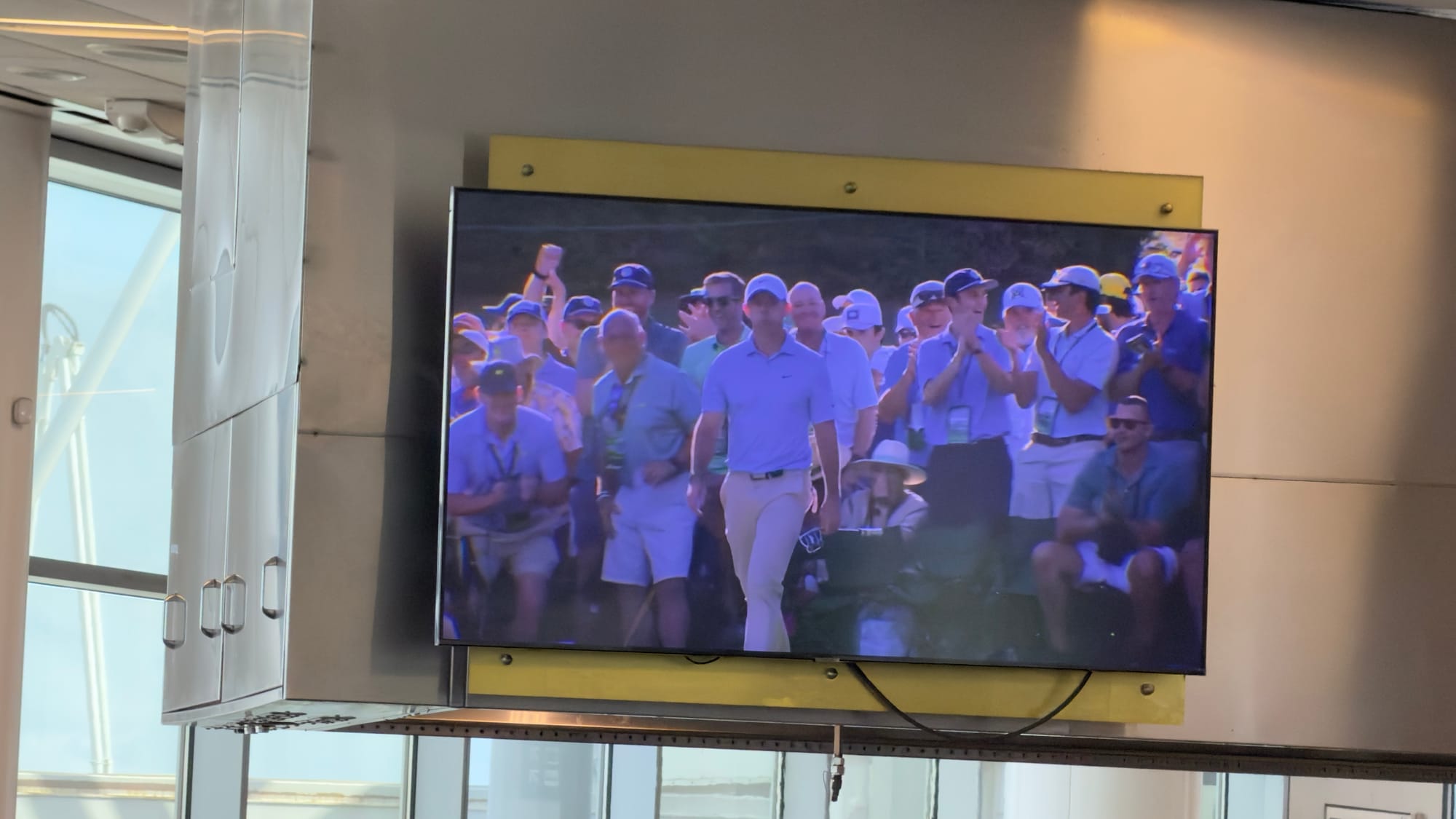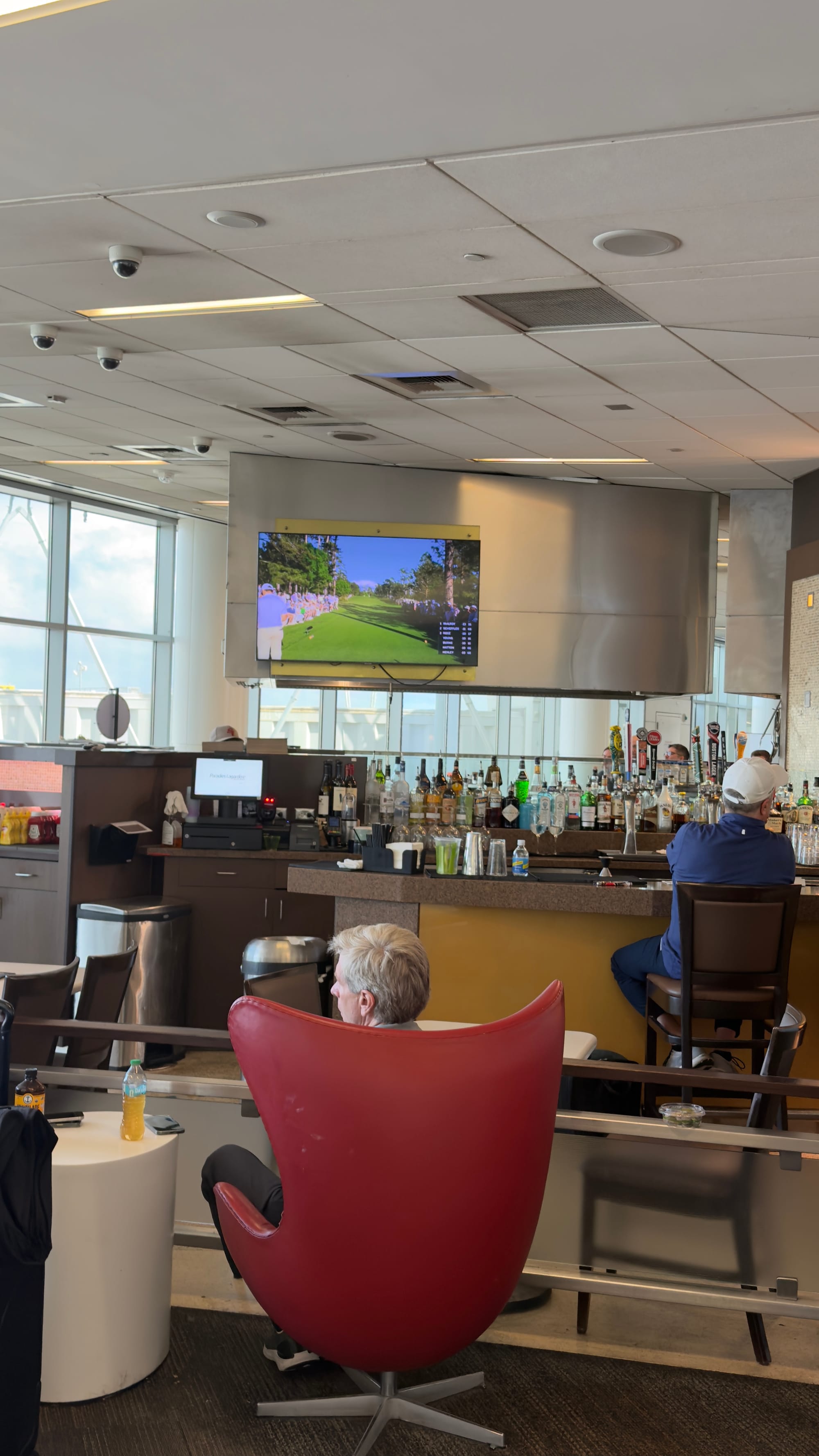 We finally made it to the airport and immediately set to leaving the USA as a couple. The Air Canada attendant phoned a number that looked to have been programmed into her phone. Clearly not the first time this issue had been presented to her. Details were exchanged, looks cast in our direction and then the dreaded hold music. Time stood still, my bag had been labelled and hovered in no-man’s land on the scales. We had to stop it from being propelled on to the big conveyor belt that led to the plane in case we had to remain in the USA. The music continued on and on. Then suddenly, a muffled conversation. Apparently Mrs Verno’s passport had been labelled as British. A quick delete and problem solved. I have my own theory on how this happened and rest assured it insures that no blame can be attached to yours’ truly. We were both relieved and within minutes found ourselves through security and settled in front of a huge to screen watching Rory bring it home. Magic.