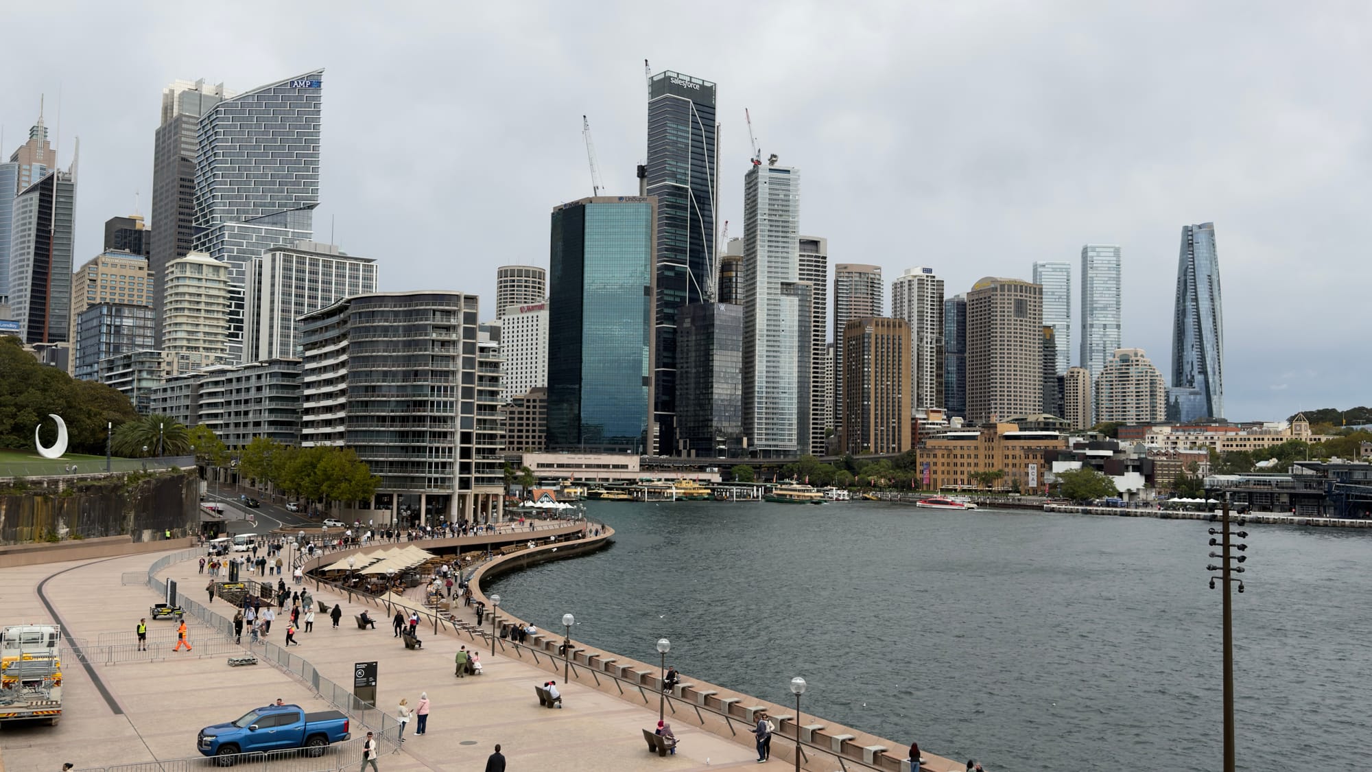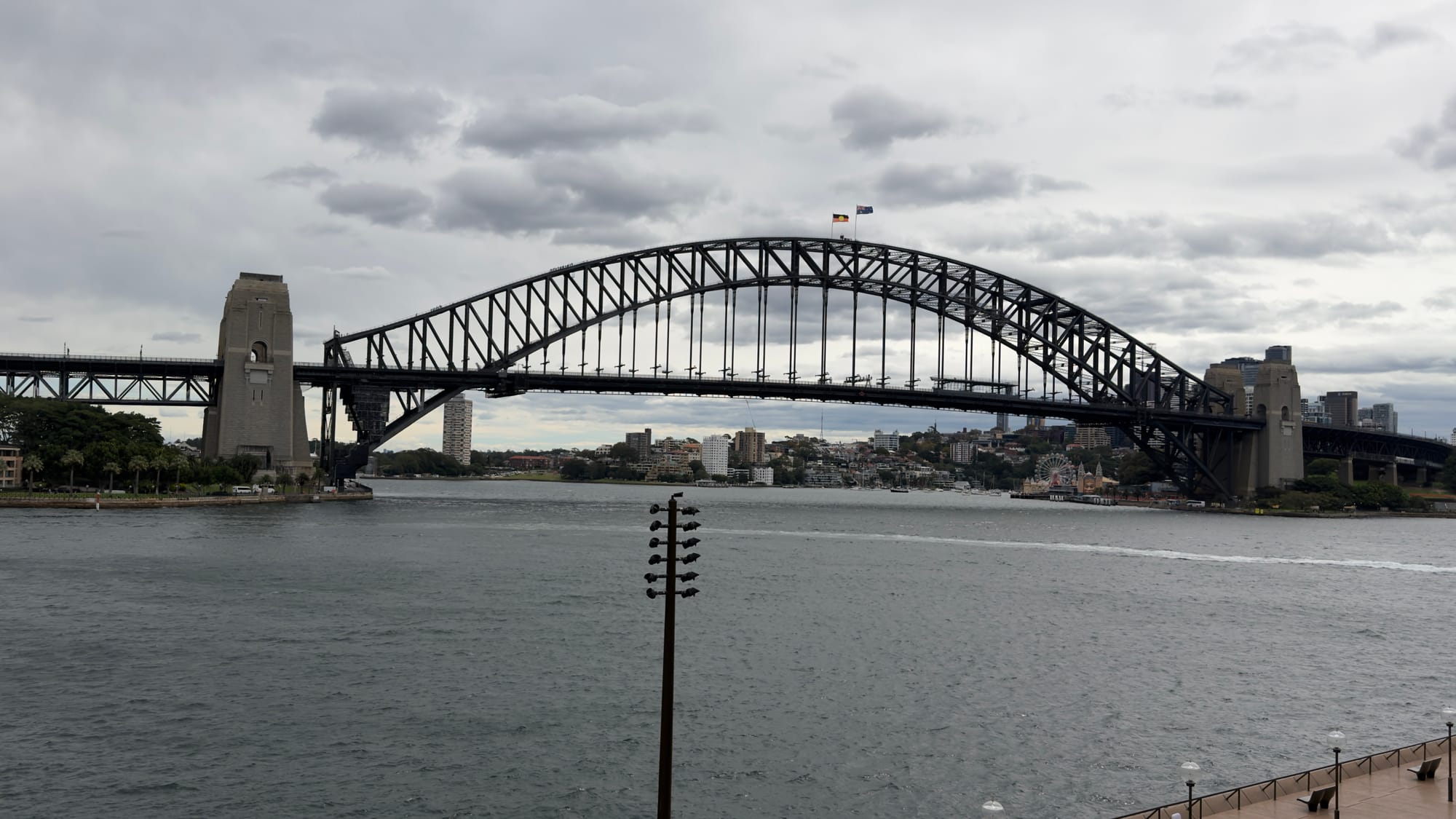 This was going to be a dander day as our plans to take the Manly ferry fell foul of the inclemency of the weather. It was overcast, windy and drizzly with heavy showers forecast. Sound familiar folks. Shorts were abandoned in favour of long trousers and a fleece was dragged out of the case. Our waterproof coats that would definitely not be needed would be needed a second time. Back to dander day and enough of our wardrobe. Breakfast was not included in this hotel so we had identified a likely spot the previous evening. Coffee Bros. I had the most wonderful fry type plate while Mrs Verno felt the need for healthy food and opted for what all the youngsters are having when the avocados run out. Açai. Look it up but it looked wonderful, like an artistic bomb went off in a fruit shop and a strawberry smoothie was used to put out the subsequent fire. It tasted good after I had polished off the last bit of halloumi on my plate. I have not mentioned before that the coffee here is to die for, really good and they take great pride in How it is prepared and presented.