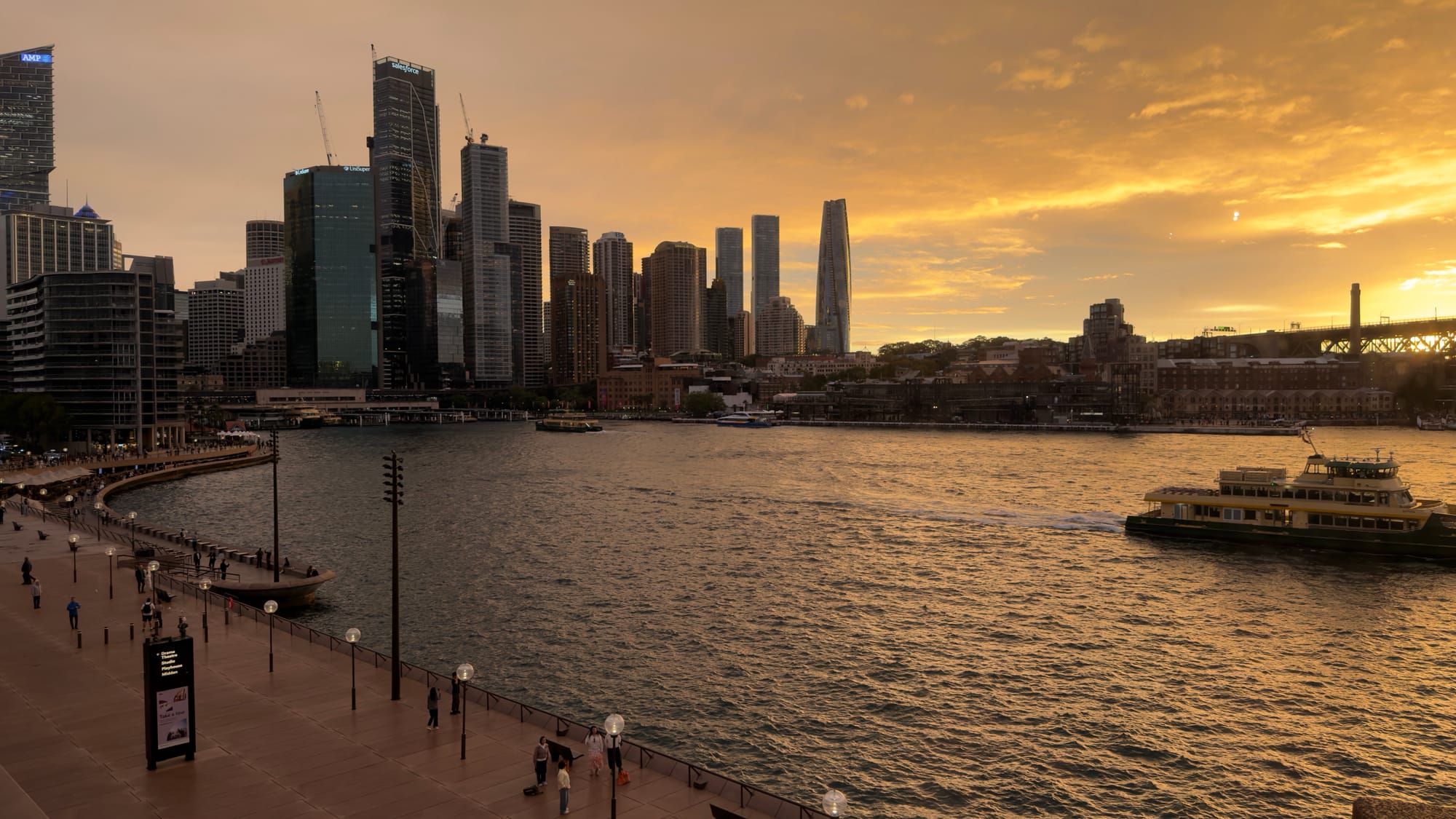 At the appointed hour having clad myself in the good shirt I had with me and still looking like a hobo beside Mrs Vernon we reversed our trip back to Circular Quay and thence to the Opera House. This was a pinch yourself moment as we headed up to the concert hall from the foyer. A wonderful bonus was that being inside the hall allowed you access to the verandas not available to the hoi polloi and gave one a wonderful view of the bridge and CBD - central business district.