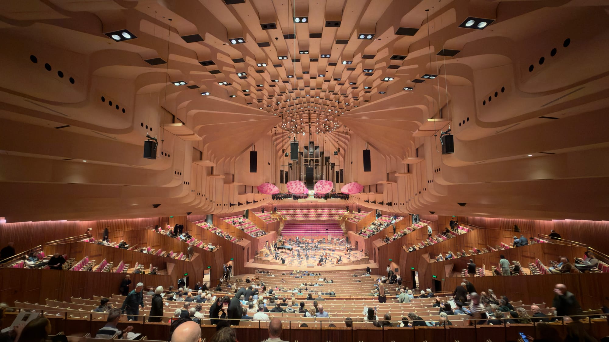 It was another short walk to the Opera House where we decided to go in for a shifty to see if there was anything we could lift. Fortunately there wasn’t. But Mrs Verno, being a creative and musical type was inspired to look at the possibility of a tour of this famous landmark. Mrs Verno then played a blinder. She looked at what was on this very evening and discovered that there were seats available. The concert was by Anna Lapwood, a famous organist, playing Mac Richter’s latest work Cosmology. Well, seats were grabbed that were in my view perfect and “Dander Day” had morphed into “We are going to a concert in the Sydney Opera House Day.” We scheduled the rest of the day to ensure we made the most of this opportunity and then hastened back to base camp using the L2 light rail for a well earned doze. All this planning takes it out of you.